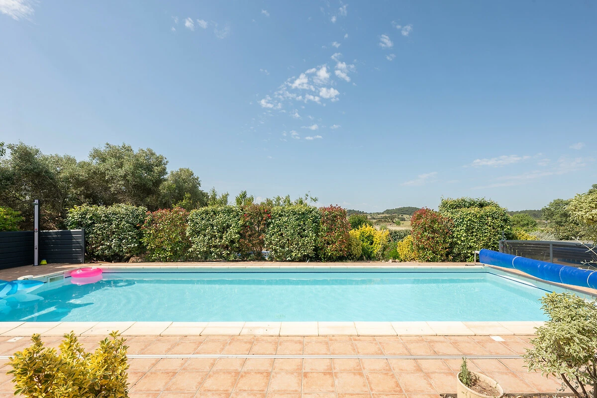Geniessen Sie das mediterrane Klima in dem wunderschönen Garten, umgeben von grünen Hügeln und dem imposanten Berg Alaric in den Corbières. Der grosszügige Swimmingpool (12 x 4,2 m) mit Unterwasserbeleuchtung und Einstiegstreppe bietet Schwimmkomfort in allen Jahreszeiten dank Überdachung und Heizung. Der Whirlpool ist strategisch neben der überdachten Terrasse platziert, sodass Sie optimal entspannen können.