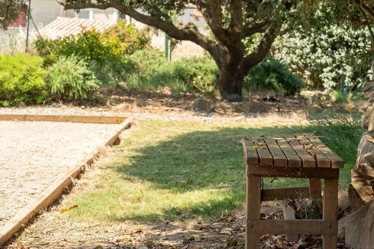 • Wunderschöner Aussenbereich: Grosser Garten, überdachte Terrassen und eine Pétanque-Bahn.