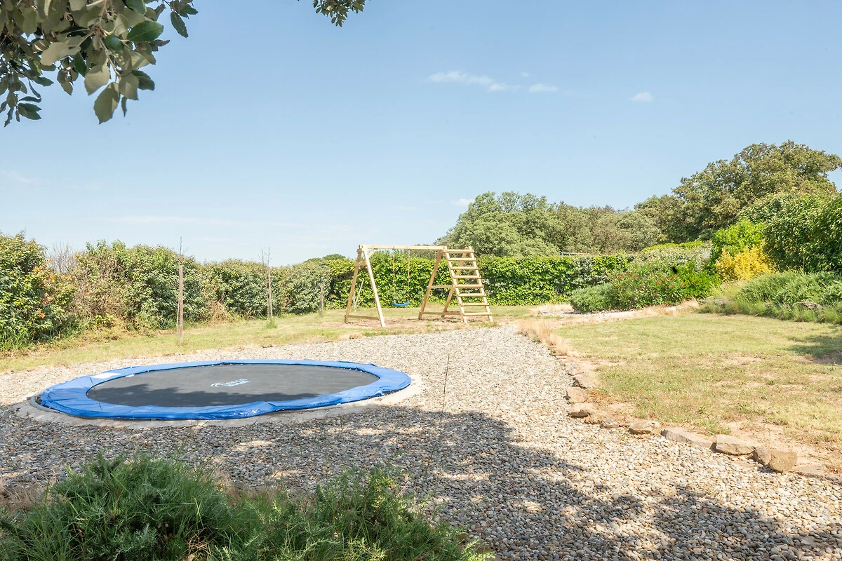 • Aussenbereiche: Überdachte Terrassen, geräumiger Garten (2200 m²), Boule-Bahn und Trampolin
