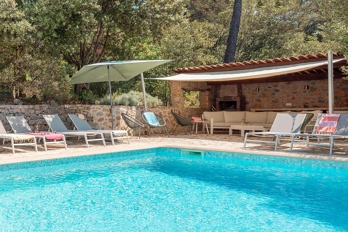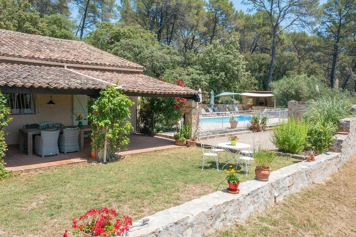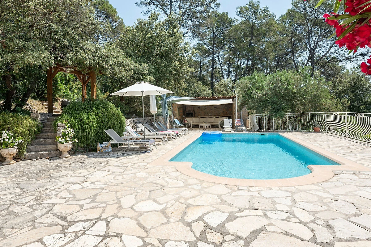 Villa La Belvédère bietet Platz für 6 Personen, verfügt über vier Schlafzimmer, drei Badezimmer, einen eingezäunten beheizten Pool, ein Poolhaus mit Lounge, eine überdachte Terrasse mit Grill und einen wunderschönen Blick über die Hügel der Provence. Ideal für Familien oder Paare, die Privatsphäre, Komfort und ein typisches südfranzösisches Landleben suchen.
