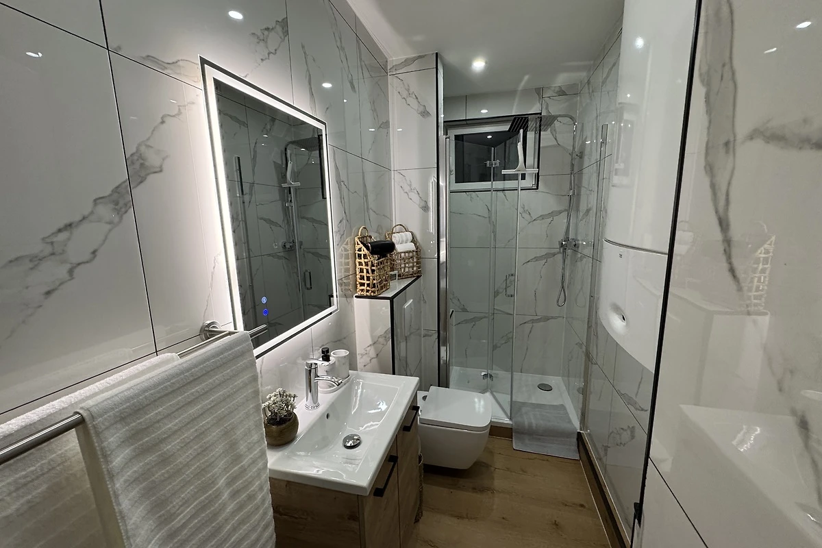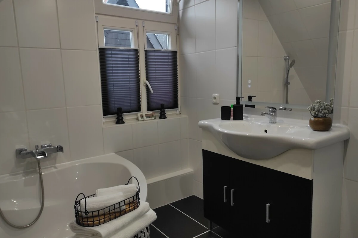 Im lichtdurchfluteten Wohnbereich mit TV und kostenlosem WLAN können Sie entspannte Abende verbringen. Die Schlafzimmer sind mit bequemer Bettwäsche ausgestattet und sorgen für erholsamen Schlaf. Zwei moderne Badezimmer, jeweils mit Haartrockner, bieten Komfort für alle Gäste.
