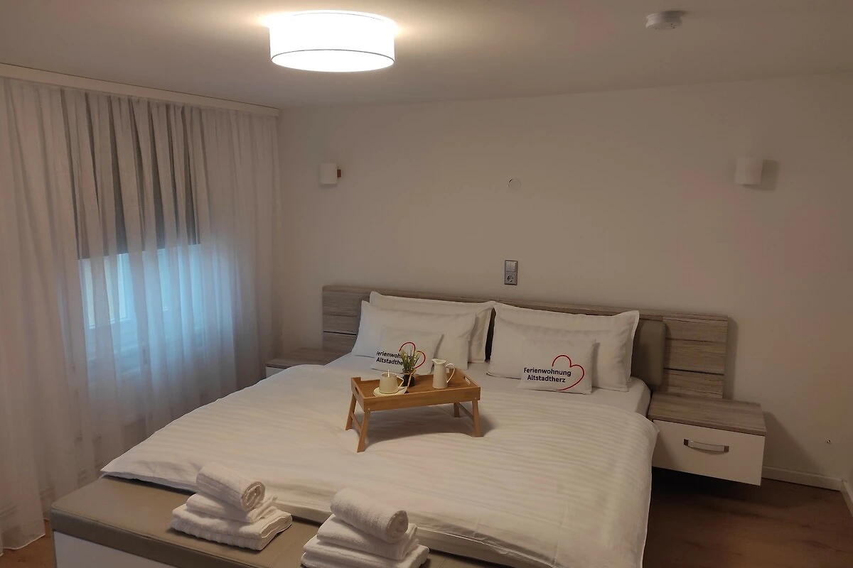 Willkommen in der Ferienwohnung Altstadtherz in Goslar – Ihr Zuhause für unvergessliche Urlaubstage! Auf großzügigen 105 m² bietet die Wohnung Platz für bis zu 6 Gäste und verteilt sich auf vier Schlafzimmer und zwei Badezimmer. Die Ausstattung lässt keine Wünsche offen: Die offene Küche ist mit Spülmaschine, Mikrowelle, Wasserkocher und Kaffeemaschine ausgestattet, sodass Sie sich bequem selbst versorgen können. Ein geräumiger Essbereich lädt zu gemeinsamen Mahlzeiten ein. Für Familien steht ein Kinderbett und ein Hochstuhl bereit, damit auch die Kleinsten gut aufgehoben sind.