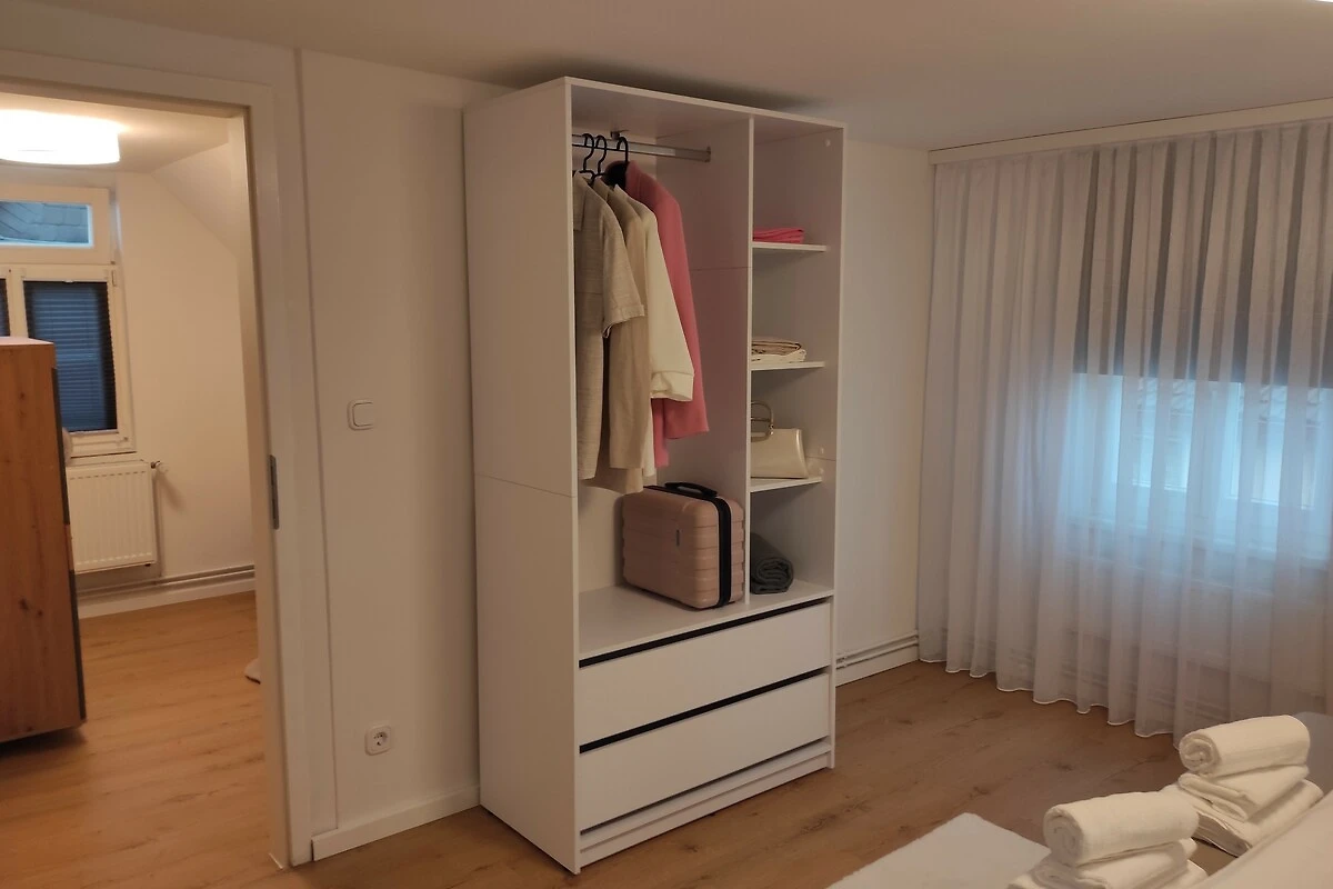 Die Wohnung ist ausschließlich für Nichtraucher geeignet und auch Handwerker finden hier eine praktische Unterkunft. Ihr Auto parkt sicher in der Garage. Die stilvolle Einrichtung mit hochwertigen Holzböden und liebevollen Details schafft eine einladende Atmosphäre. Genießen Sie die zentrale Lage in der historischen Altstadt und starten Sie von hier aus Ihre Entdeckungstouren durch Goslar und den Harz!