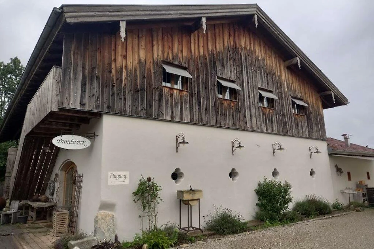 Unser grosszügiges Studio-Appartement im 1. Obergeschoss bietet auf 75 m² viel Raum zum Wohlfühlen. Über eine Aussentreppe gelangen Sie direkt in den offen gestalteten Wohnbereich mit hoher Dachschräge und grossen Fensterfronten, die für ein helles, freundliches Ambiente sorgen. Das Appartement ist hochwertig und geschmackvoll eingerichtet und verfügt über ein komfortables Doppelbett, ein modernes Duschbad mit WC sowie eine separate, voll ausgestattete Küche. Die Lage ist ruhig und ländlich, mit einem herrlichen Blick auf Wälder und Wiesen – ideal zum Entspannen und Durchatmen. Ein Parkplatz direkt vor der Wohnung steht Ihnen selbstverständlich zur Verfügung. Wasserburg am Inn, Rosenheim und der Chiemsee sind schnell erreichbar – ein perfekter Ausgangspunkt für Ausflüge ins Chiemgau, in die Berge oder entlang des Inntals. Zahlreiche Freibäder und Seen befinden sich in unmittelbarer Nähe. Auch München, das Messegelände und der Flughafen liegen nur etwa 45 km entfernt. Die Bettwäsche ist bereits im Mietpreis enthalten. Die Handtücher bringen Sie gerne selbst mit. Im denkmalgeschützten BUNDWERKSTADEL stehen Ihnen darüber hinaus verschiedene Seminarräume zur Verfügung – ausgestattet mit Toilette, Küche und einer gemütlichen Bar. Diese eignen sich hervorragend für Workshops, Schulungen oder kreative Zusammenkünfte. Nutzen Sie unser Haus gerne auch als modernen Workingspace, um in inspirierender Umgebung konzentriert zu arbeiten. In Kombination bieten wir Ihnen auf über 200 m² Wohnfläche insgesamt zwei grosszügige Appartements für bis zu 6 Personen. Hier verbinden sich Komfort, Gemütlichkeit und Funktionalität – ideal für längere Aufenthalte, Gruppen oder Teams, die Arbeit und Erholung in harmonischer Atmosphäre miteinander verbinden möchten.
