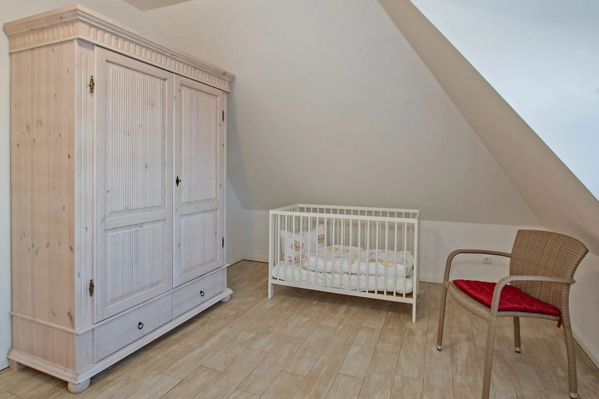 Für Kleine Usedom-Fans steht ein Kinderbett und ein Hochstuhl bereit.