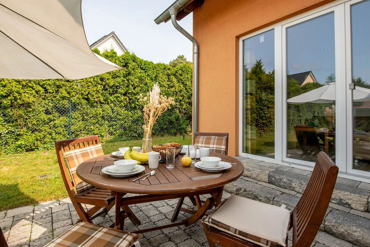 Das Ferienhaus liegt in der Bahnhofstrasse 80 A in Trassenheide, einem der beliebtesten Badeorte der Insel Usedom.