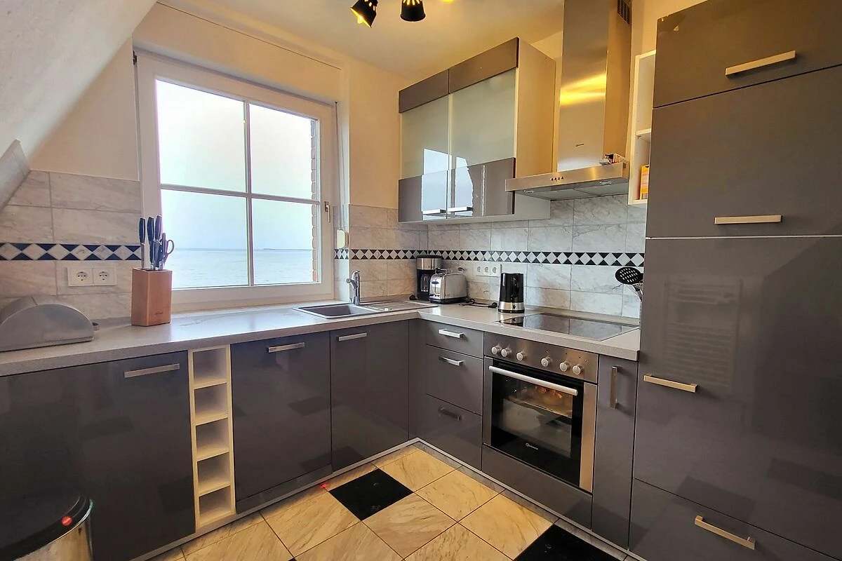 KÜCHE // offene Küchen, Ceranfeld, Spülmaschine, Kühlschrank mit Gefrierfach, Backofen, Toaster, Wasserkocher, Kaffeemaschine, Mikrowelle, reichlich Besteck, Geschirr und Küchenutensilien ++