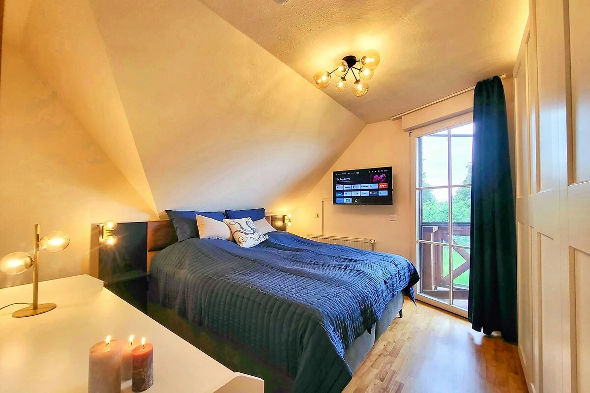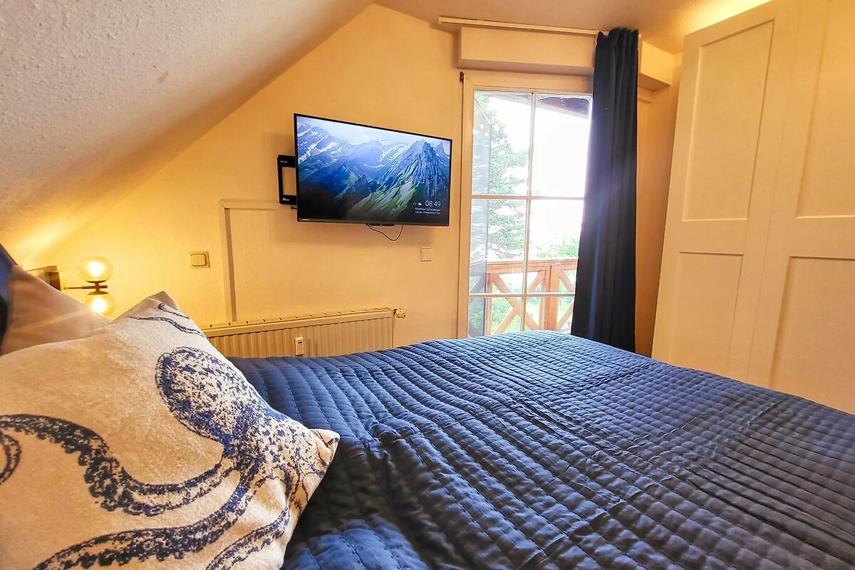 SCHLAFEN // ein Schlafzimmer mit bequemem Doppelbett, SMART-TV im Obergeschoss, ein Schlafzimmer mit bequemem Doppelbett und SMART-TV im DG, Schlafcouch im Wohnzimmer ++
