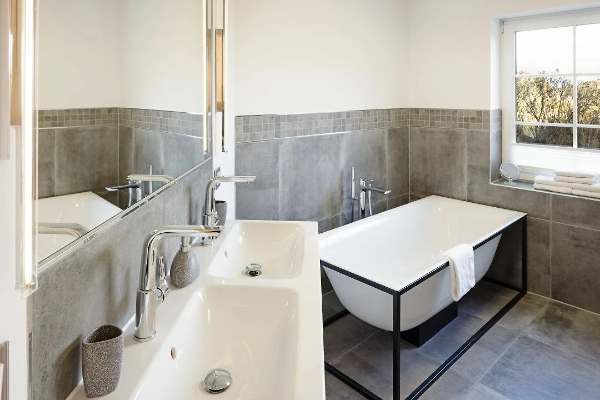 „Sea Breeze“ bietet zwei Schlafzimmer, jeweils mit hochwertigen Boxspring-Doppelbetten (180x200 m und 160x200 m), großzügigen Kleiderschränken und Flatscreens. Das moderne Tageslichtbad verwöhnt mit einer ebenerdigen Dusche und einer Badewanne. Ein zusätzliches Gäste-WC befindet sich direkt im Eingangsbereich der Wohnung.