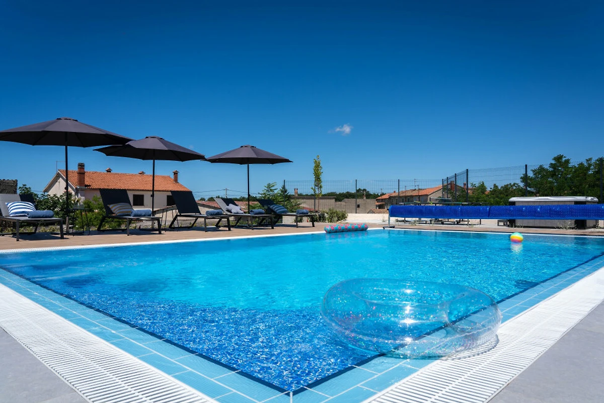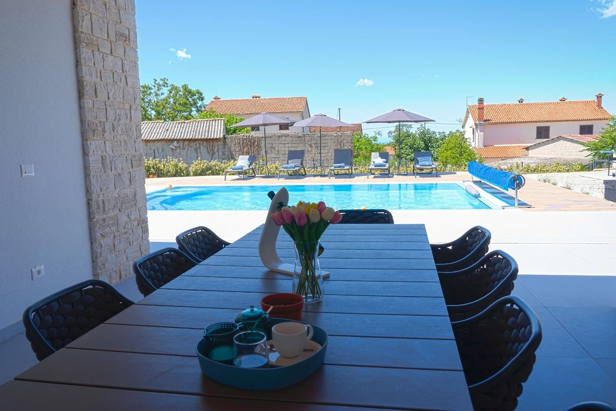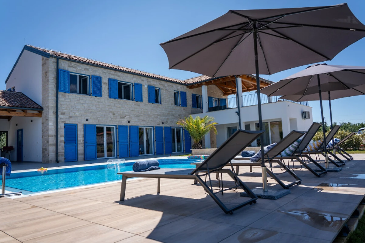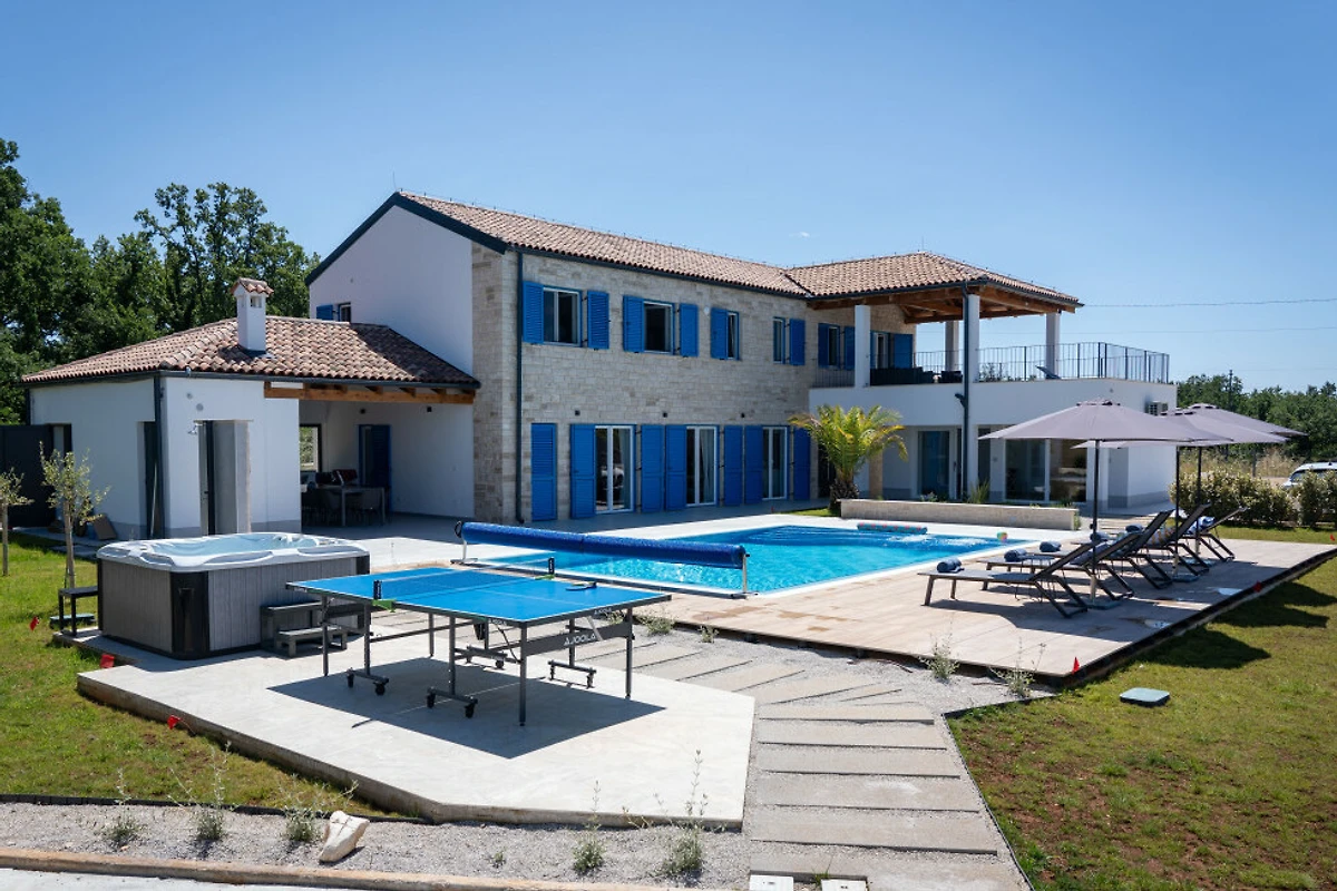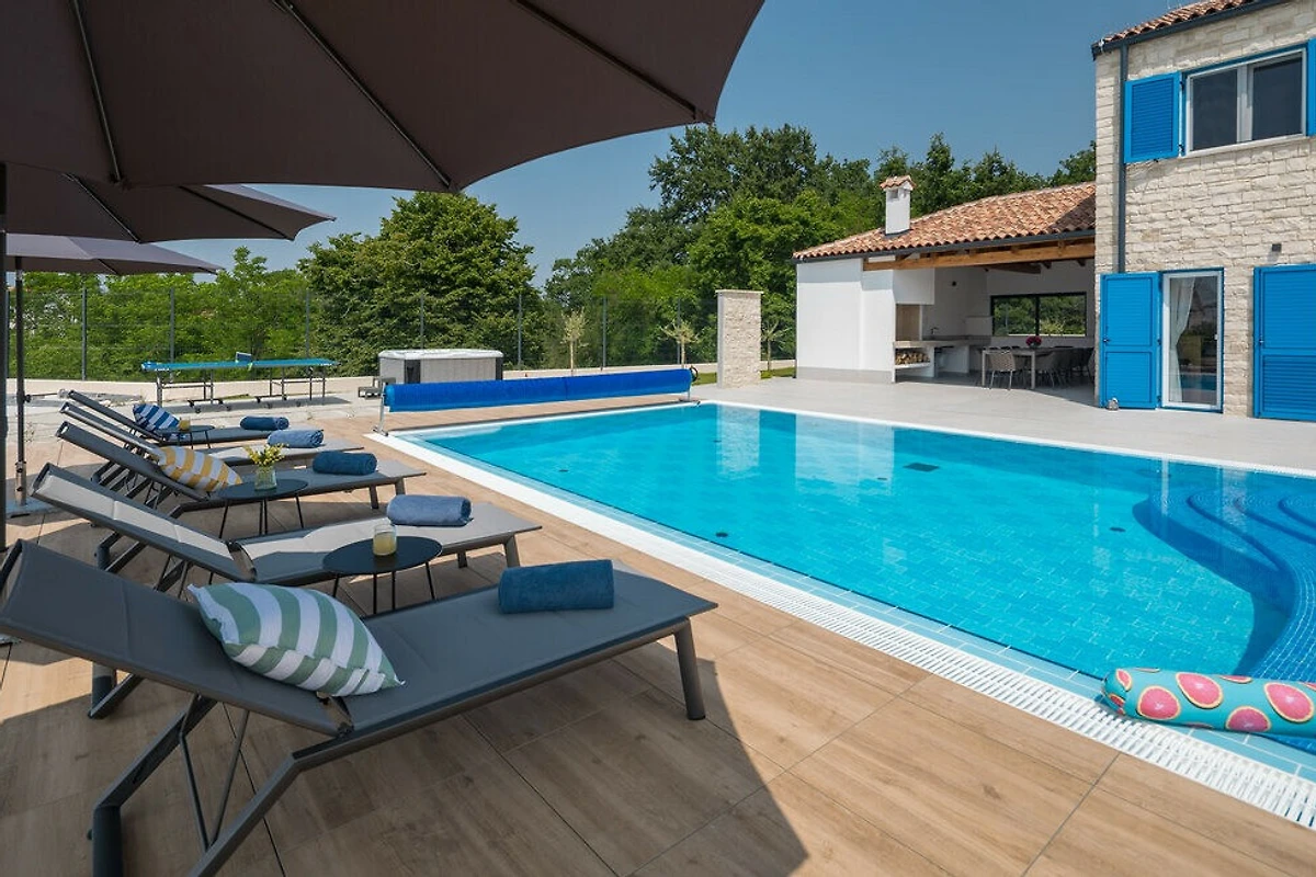 Entdecken Sie Villa Blue Moon, eine atemberaubende ländliche Unterkunft, die in der malerischen Stadt Višnjan eingebettet ist und Familien und Paaren einen idyllischen Zufluchtsort voller Ruhe und Komfort bietet.