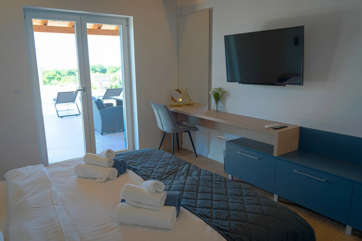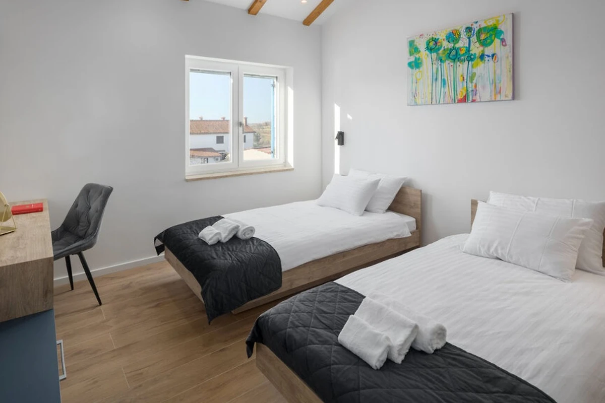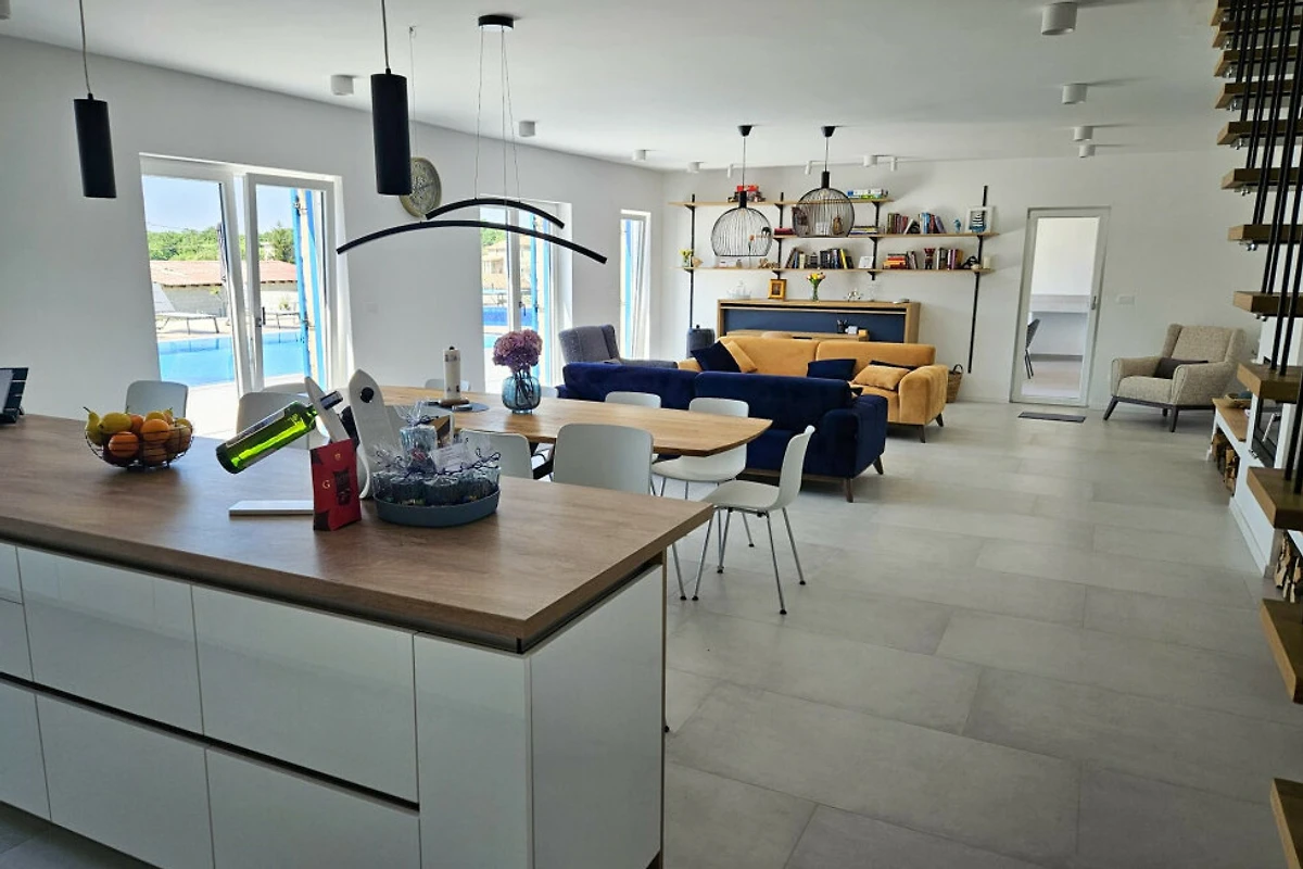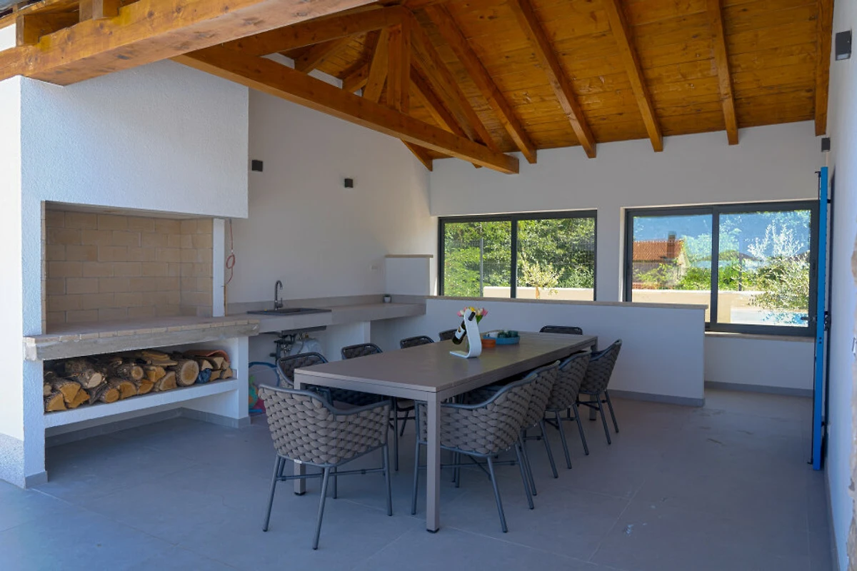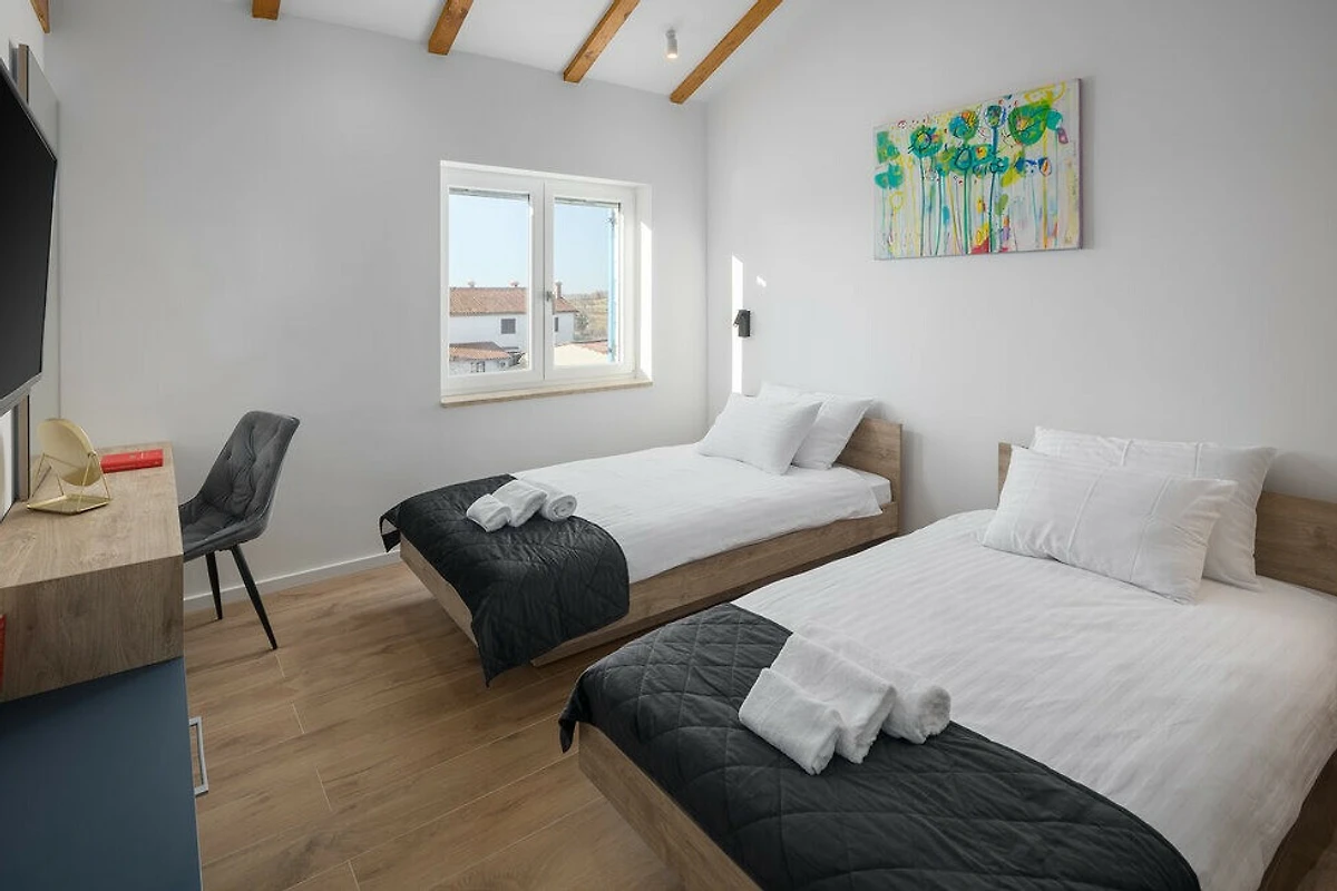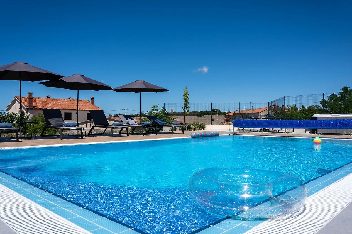 Entdecken Sie Villa Blue Moon, eine atemberaubende ländliche Unterkunft, die in der malerischen Stadt Višnjan eingebettet ist und Familien und Paaren einen idyllischen Zufluchtsort voller Ruhe und Komfort bietet.