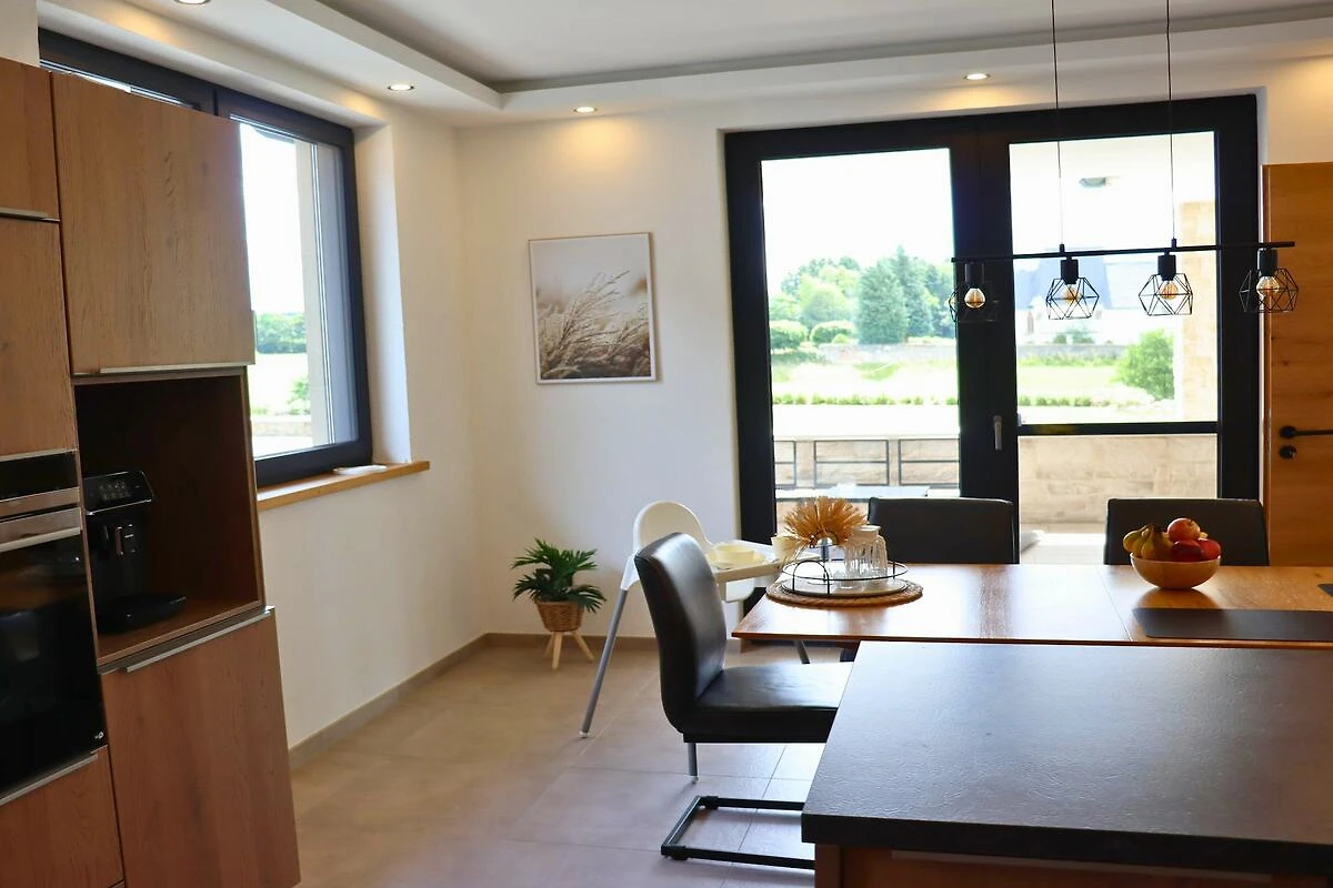 Die „Eifel Finca“ liegt im Herzen der Vulkaneifel, im ruhigen Ortskern von Wiesbaum. Das 2021 erbaute Ferienhaus verbindet modernen Komfort mit einer entspannten Atmosphäre. Schon beim ersten Ankommen genießen Sie den Blick auf die Alte Kirche, umringt von grünen Wiesen und Bäumen.