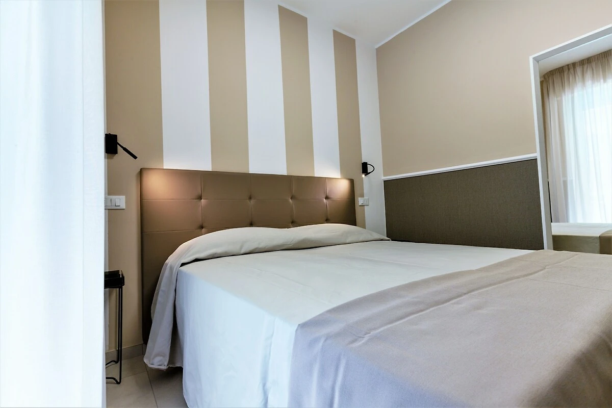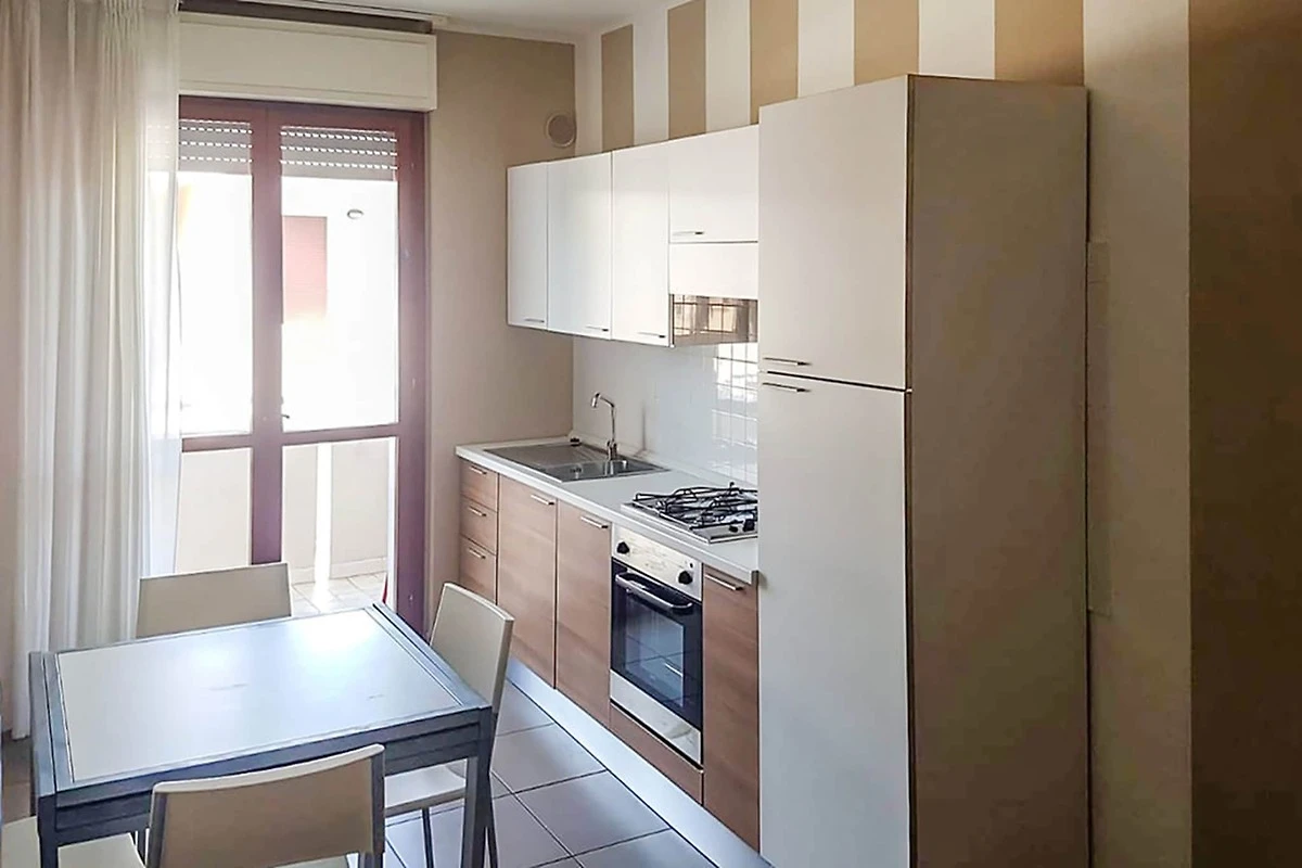 Das Gebäude befindet sich im Erdgeschoss, ersten oder zweiten Stock der Via Merano 25, und bietet einen gemütlichen Rückzugsort, nur 500 m vom mit der Blauen Flagge ausgezeichneten Silberstrand entfernt. Es verfügt über eine offene Küche mit Backofen, Herd, Kühlschrank und Spüle, einen hellen Wohn-/Essbereich mit Schlafsofa, Esstisch und Zugang zu Balkon oder Terrasse, ein ruhiges Doppelzimmer und ein modernes Badezimmer mit Dusche und Bidet. Die Klimaanlage sorgt für Komfort, und ein gemeinsamer Waschraum bietet zusätzlichen Komfort – ideal für Paare oder kleine Familien.