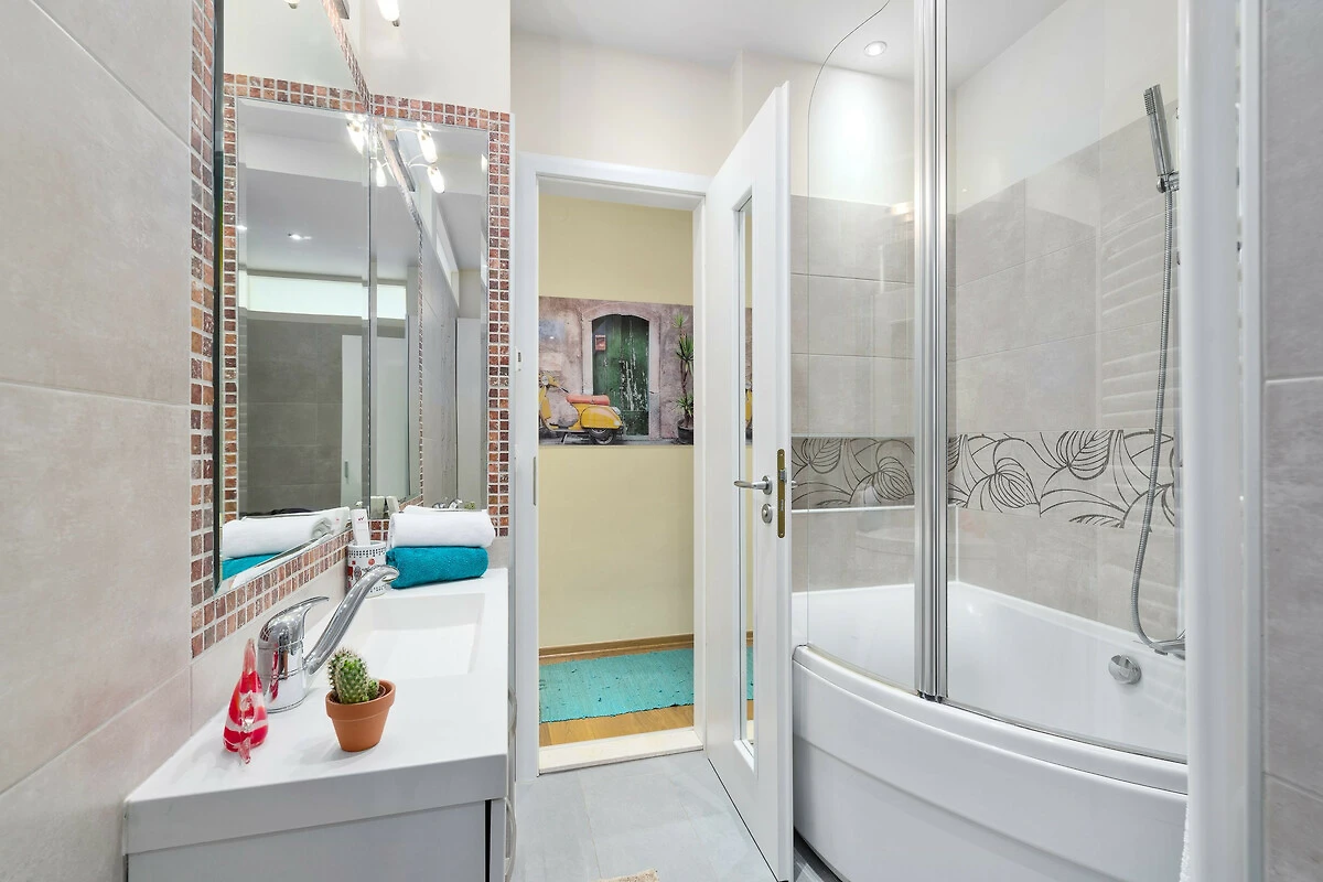 Entdecken Sie eine charmante moderne Wohnung im Herzen von Zadar. Mit ihrer hervorragenden Lage und durchdachten Annehmlichkeiten bietet diese Wohnung eine ideale Basis zur Erkundung der historischen Stadt Zadar und der atemberaubenden kroatischen Küste. Dieser süsse und einladende 75 Quadratmeter grosse Raum bietet bequem Platz für bis zu 4 Gäste und 1 Baby und verfügt über zwei Schlafzimmer mit Doppelbett.