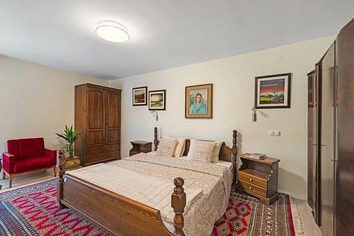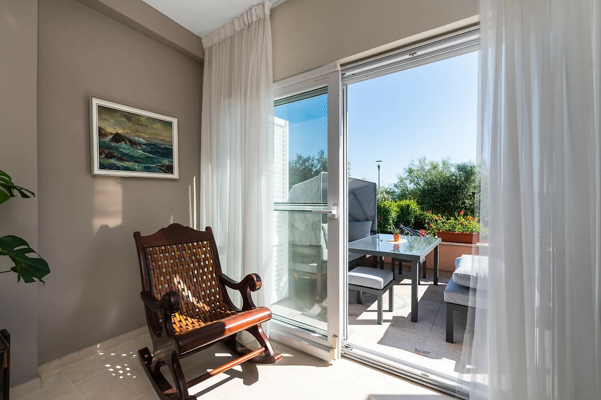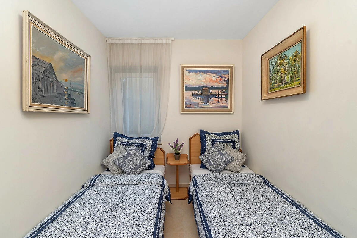 Ferienwohnung Villa Carmen bietet einen entzückenden Meeraufenthalt in dem charmanten Küstendorf Sukošan. Diese geräumige 100 Quadratmeter grosse Immobilie bietet komfortable Unterkunft für bis zu 6 Erwachsene und 2 Kinder und verfügt über 3 Schlafzimmer mit flexiblen Schlafmöglichkeiten, einschliesslich eines Kingsize-Bettes, eines Queensize-Bettes, zwei Einzelbetten und eines Doppelschlafcouchs.