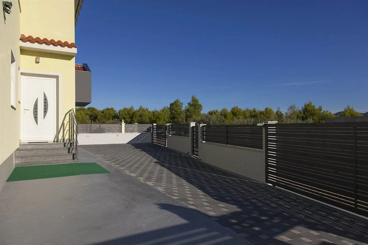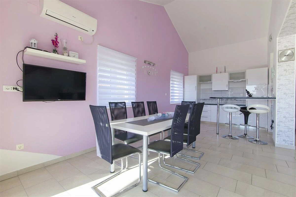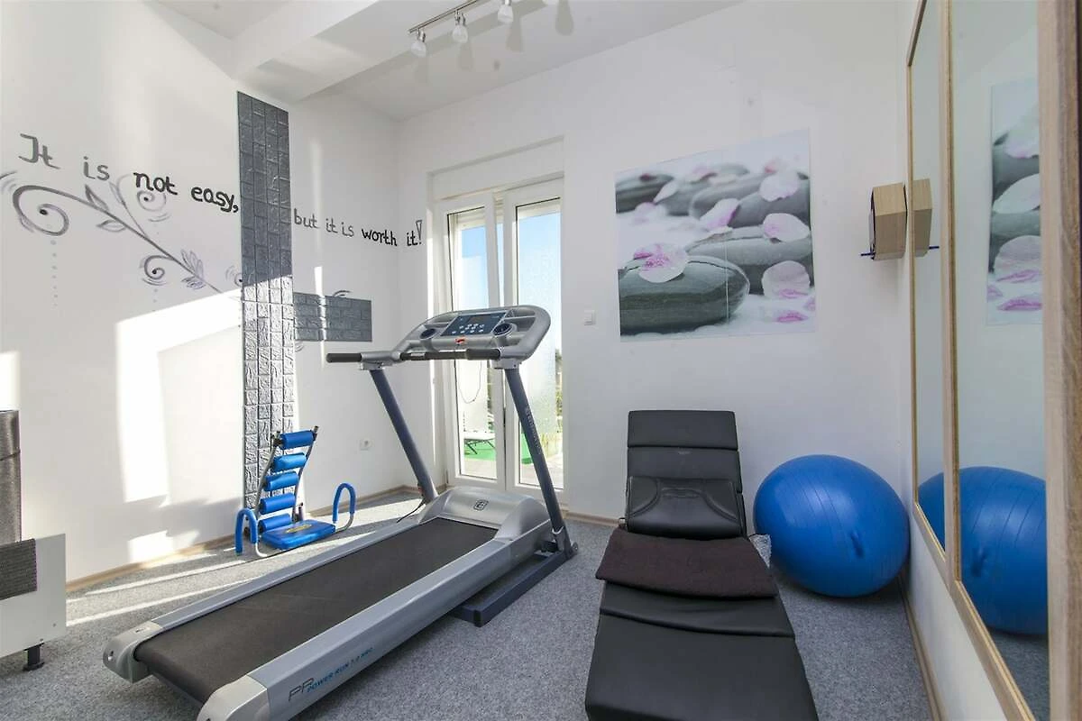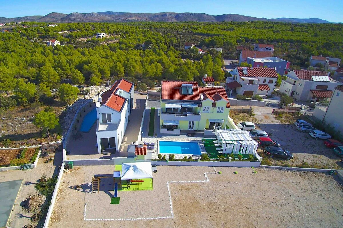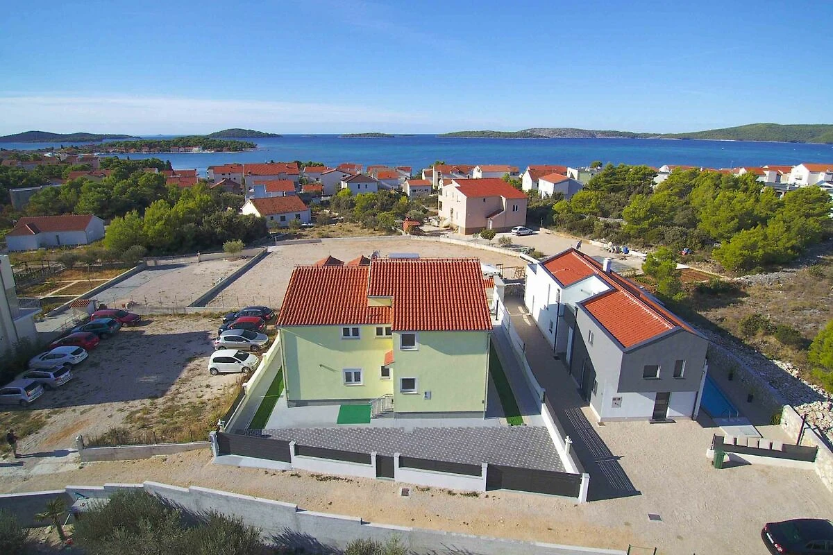 Hier finden Sie Komfort, Privatsphäre und eine perfekte Lage, alles in einem! Diese wunderschöne Villa mit privatem Pool und großem Wellness-Bereich liegt in Brodarica, einem ruhigen Vorort, nur 300 m vom Strand entfernt und 6 km von der malerischen Altstadt Šibeniks. Die Villa erstreckt sich über zwei Etagen und bietet zwei vollständig ausgestattete Apartments, was sie zu einem perfekten Meerurlaubs-Rückzugsort für 2 Familien oder eine Gruppe von bis zu 10 Gästen macht. Das Innere Ihres haustierfreundlichen Ferienhauses besteht aus 5 Schlafzimmern, 4 Badezimmern und 2 eleganten Wohn-/Esszimmern, die beide mit voll ausgestatteten offenen Küchen verbunden sind. Es gibt auch einen Freizeitraum mit Fitnessgeräten sowie eine Sauna zu Ihrer Verfügung. Eine große überdachte Terrasse auf der obersten Etage bietet atemberaubende Ausblicke auf die Adria und die umliegenden Inseln. Der Außenbereich ist vollständig eingezäunt und umfasst Ihren privaten Swimmingpool, eine charmante überdachte Terrasse, die gut mit Outdoor-Möbeln ausgestattet ist, Grilleinrichtungen, einen Kinderspielbereich und viel überdachten Parkraum. Wir freuen uns, Ihnen diese Immobilie anzubieten, da wir die Villa persönlich überprüft haben. Bei einem Besuch von My Dalmatia waren wir besonders von der Gastfreundschaft Ihrer Gastgeber beeindruckt. Sie bieten einen Bootsliegeplatz in der Nähe des Hauses kostenlos an und wenn Sie länger als 2 Wochen bleiben, werden sie Sie zum Abendessen in eine Taverne in einem nahe gelegenen Dorf mitnehmen. Innerhalb von 500 m Entfernung finden Sie alles, was Sie benötigen: den Strand, einen Lebensmittelladen und ein Restaurant. Solaris, ein großes modernes Touristenresort, das viele Aktivitäten bietet, ist nur 1 km entfernt. Die charmante Stadt Šibenik mit ihren engen Gassen und kleinen Tavernen ist in 10 Minuten mit dem Auto erreichbar. Diese Lage macht Ihre Villa zu einem perfekten Ausgangspunkt für die Erkundung des restlichen Dalmatiens, da sie zwischen Split und Zadar liegt und Ihre Reise zu einer kurzen macht. Auch der nächstgelegene Nationalpark, Krka, ist nur 20 Minuten entfernt.