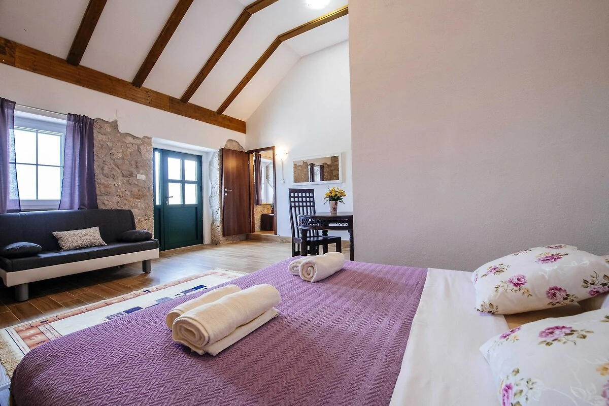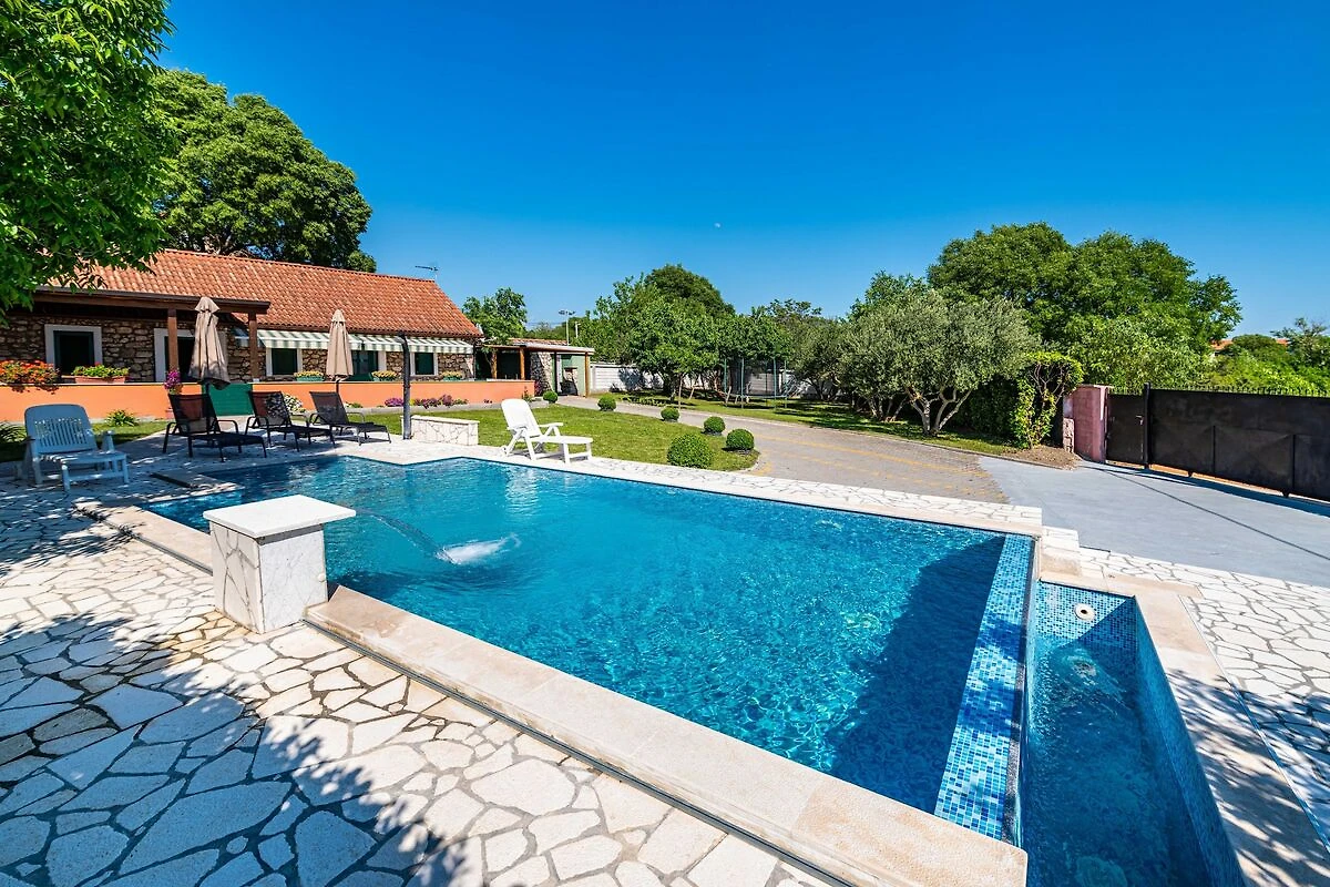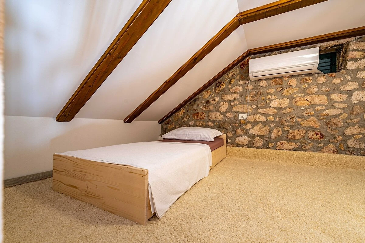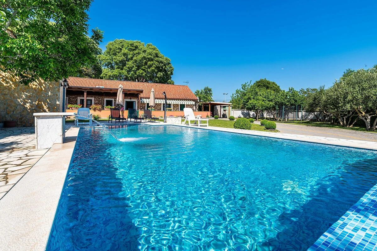 Hier verbinden Sie Privatsphäre, Komfort und gute Atmosphäre in einem! Das Ferienhaus Momo mit seinem wunderbaren privaten Infinity-Pool genießt eine ruhige, ländliche Lage im Dorf Kakma. Nur 7 km von Biograd na Moru und seinen schönen Stränden entfernt, ist dies der perfekte Ort, um einen friedlichen Urlaub mit viel Privatsphäre zu genießen. Von My Dalmatia für seine entspannte Umgebung und großartigen Gastgeber ausgewählt. Dieses Steinhaus wurde kürzlich vollständig renoviert und verfügt nun über rustikale Einrichtungen und lokalen Stein. Das Innere besteht aus einem wunderschönen Wohnbereich, einer voll ausgestatteten offenen Küche und zwei geräumigen klimatisierten Schlafzimmern mit eigenen Badezimmern. Es gibt ein zusätzliches Zwischengeschoss-Schlafzimmer mit 2 Einzelbetten, das für 2 Erwachsene zur Verfügung steht. Dies macht das Ferienhaus Momo zu einer perfekten Wahl für eine Gruppe von bis zu 6 Personen. Von Wohnzimmer aus haben Sie direkten Zugang zur geräumigen 70 m² großen überdachten Terrasse und einem wunderschönen Infinity-Pool, der mit Sonnenliegen ausgestattet ist. Im Garten steht Ihnen außerdem eine große Grillstelle zur Verfügung sowie eine Außentoilette. Die angenehme Terrasse verfügt über einen Esstisch und schöne Outdoor-Möbel, perfekt um Mahlzeiten in Gesellschaft Ihrer Familie und Freunde zu genießen. Ein privater Parkplatz steht Ihnen auf Ihrem eigenen Grundstück unter dem Carport zur Verfügung. Sie können die Adria in weniger als 10 Minuten mit dem Auto erreichen; hier können Sie zwischen Sand-, Kies- oder Steinstrände wählen. Von hier aus starten tägliche Bootsausflüge zu den Kornati-Inseln. 8 km von Ihrem Ferienhaus entfernt befindet sich ein weiteres Naturschutzgebiet, der Vrana-See; ein idealer Ort für Angler und Vogelbeobachter. In weniger als einer Stunde Fahrtzeit können Sie auch den Nationalpark Paklenica und die Krka-Wasserfälle sowie die alten Städte Zadar oder Sibenik besuchen.