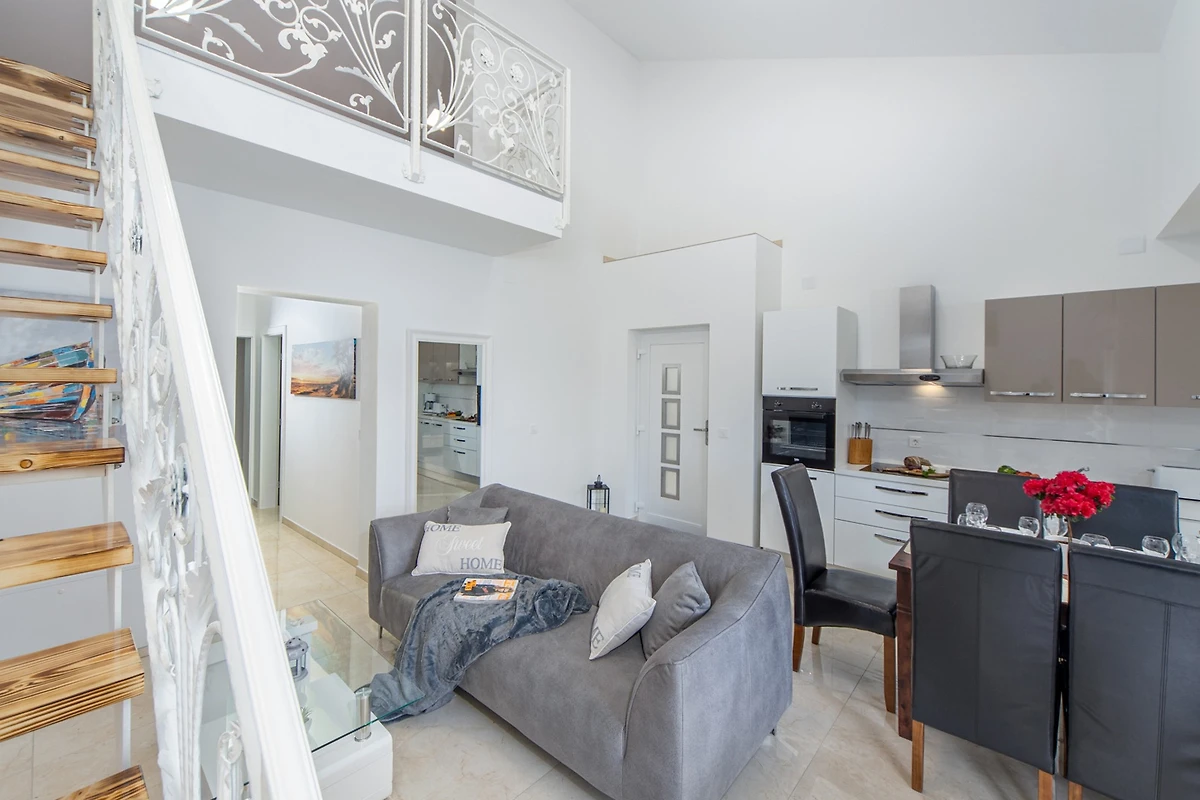 Entdecken Sie Villa Shaula 1, einen charmanten familienfreundlichen Rückzugsort, der in der ruhigen ländlichen Landschaft in der Nähe von Šibenik eingebettet ist. Diese geräumige 105m² Villa bietet einen perfekten Zufluchtsort für bis zu 6 Gäste und verfügt über 3 komfortable Schlafzimmer mit Kingsize-Betten, die einen erholsamen Schlaf garantieren.