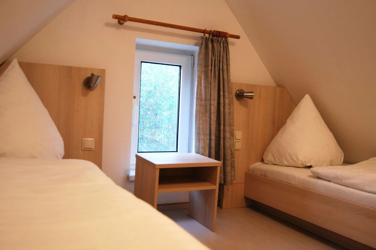 Pro Doppelhaushälfte können zwar max. 4 Personen untergebracht werden. Allerdings ist der Schlafraum im Spitzboden offen und die Schlafcouch nur 140 cm breit.