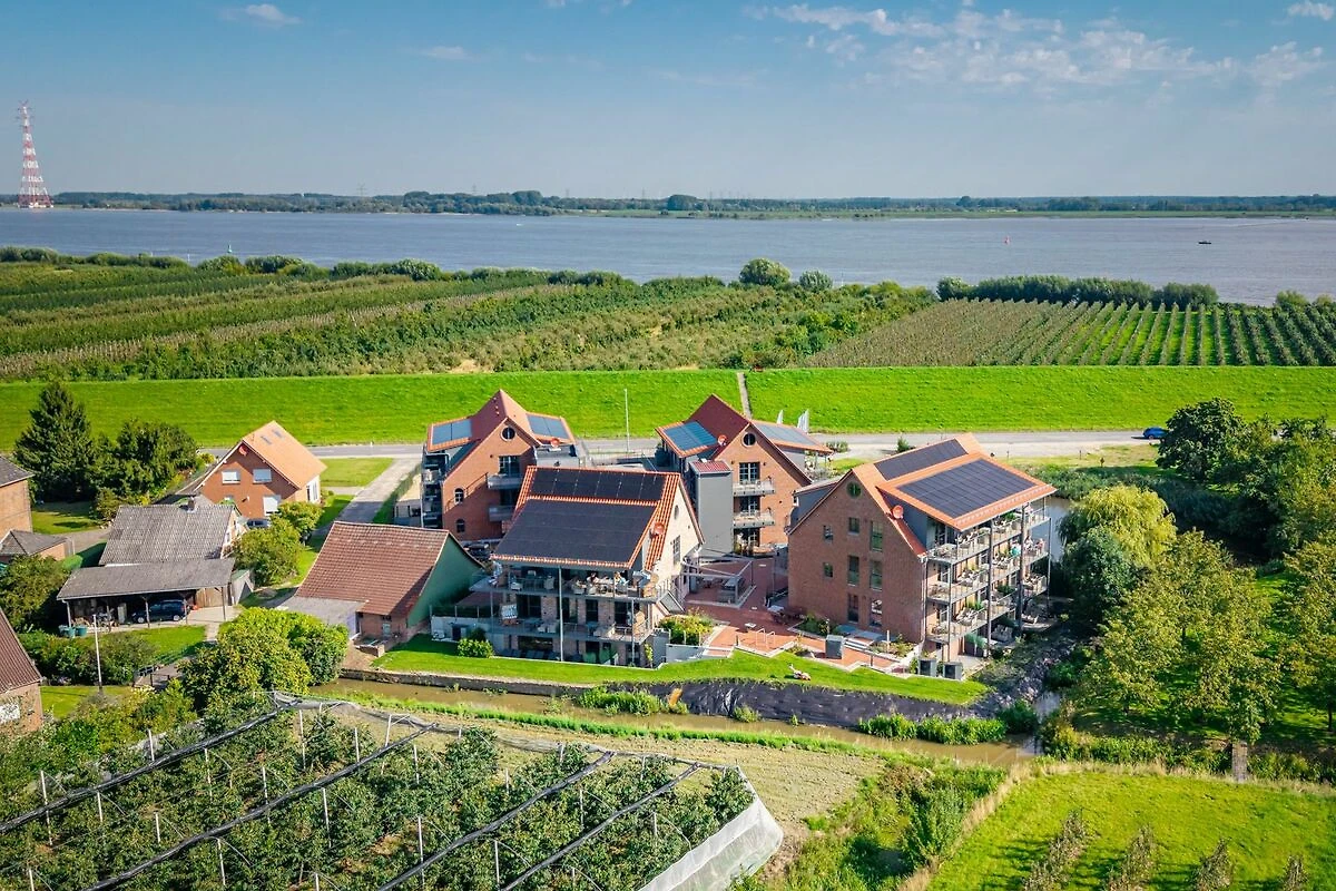 Willkommen in der Ferienresidenz Elbufer Altes Land. Ihr perfektes Ziel für Erholung und Entspannung direkt an der Elbe! Geniessen Sie moderne Ferienwohnungen inmitten der traumhaften Obstplantagen des Alten Landes, unweit von Hamburg. Unsere Residenz bietet Ihnen komfortable, barrierefreie Wohnungen mit Elbblick, einen schönen Saunabereich und direkter Nähe zu zahlreichen Ausflugszielen.
