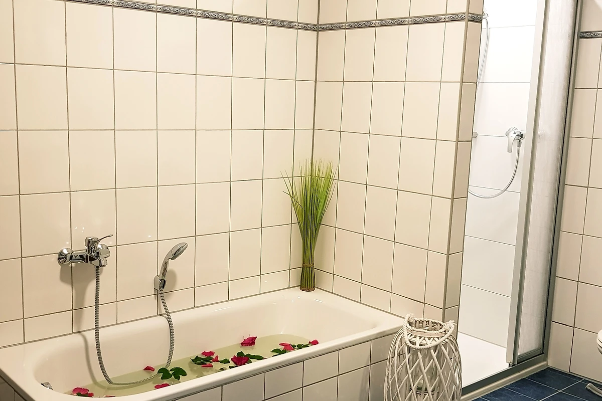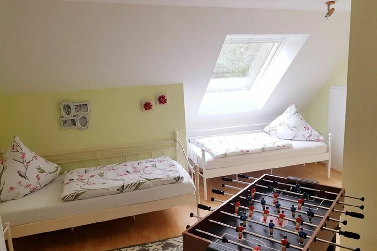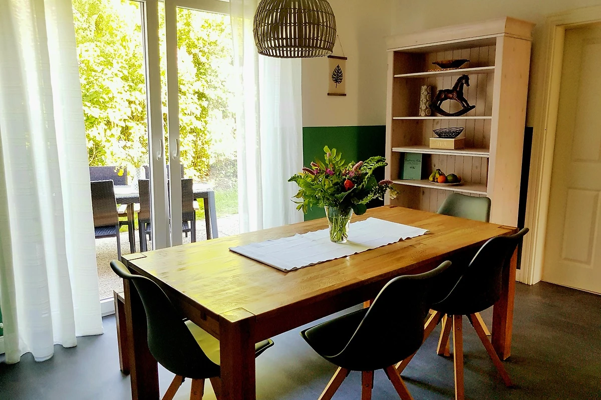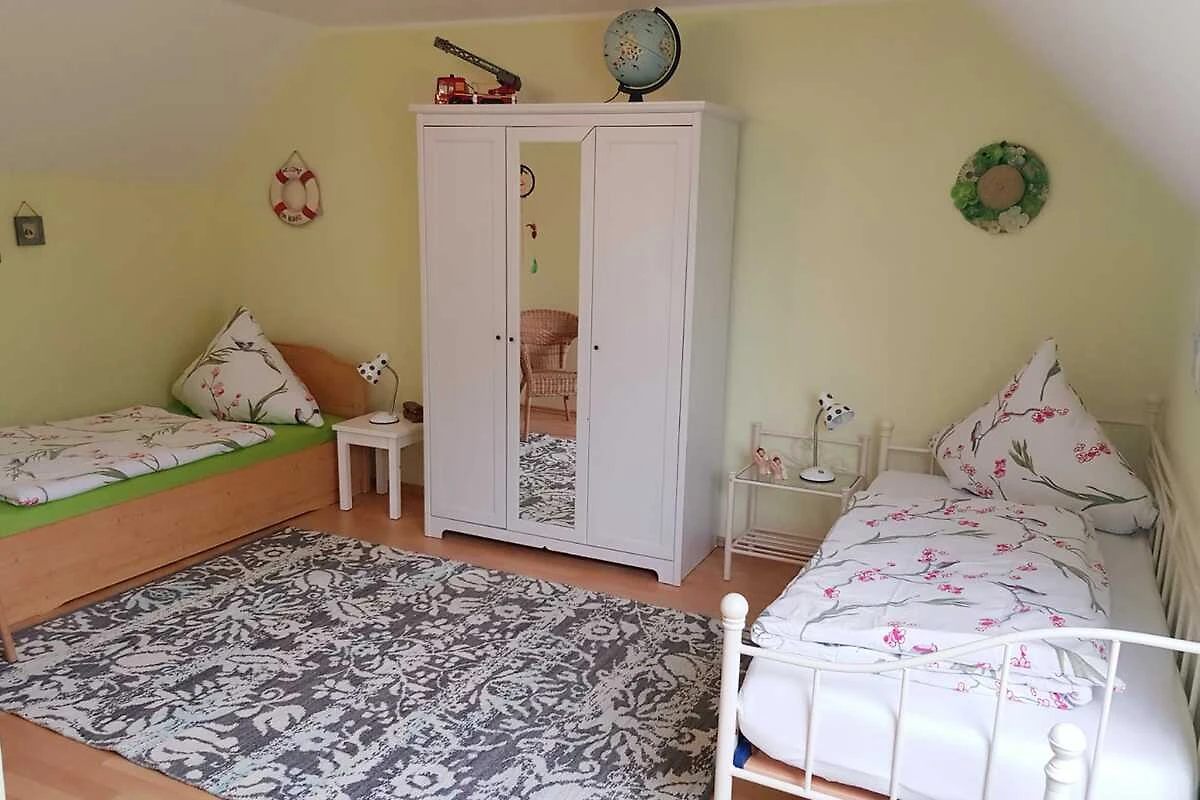 Drei Schlafzimmer bieten erholsamen Schlaf, während moderne Annehmlichkeiten wie WLAN, TV den Aufenthalt besonders komfortabel machen. Waschmaschine und Trockner stehen gegen eine kleine Benutzungsgebühr zur Verfügung. Die offene Küche ist mit Geschirrspüler, Mikrowelle, Kaffeemaschine, Wasserkocher und allem, was das Herz begehrt, ausgestattet. Dank Parkplatz direkt am Haus beginnt Ihr Urlaub ganz entspannt. 2 Fahrräder stehen zur Erkundung der malerischen Umgebung bereit. Das Badezimmer überzeugt mit Dusche, Badewanne und Tageslicht. Für die kleinen Gäste steht ein Wickeltisch bereit. Das Landhaus ist ausschließlich für Nichtraucher. Selbstverständlich darf auf der Terrasse und im Garten geraucht werden. Auch Langzeitaufenthalte und Monteure sind herzlich willkommen.