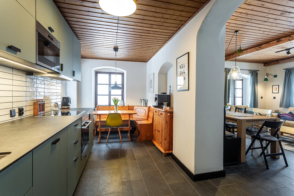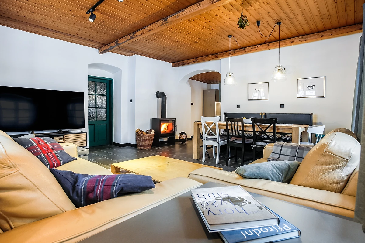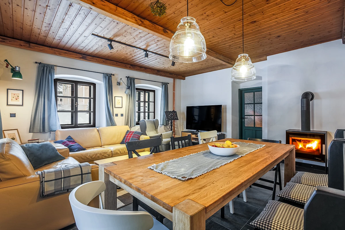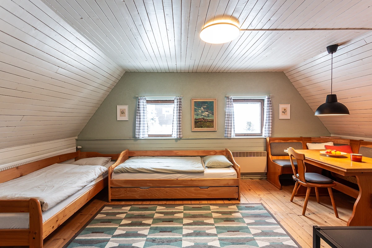 Die Hütte befindet sich im Herzen der höchstgelegenen Gemeinde des Erzgebirges – Boží Dar – auf einer Höhe von 1.025 m ü. M. Die Entfernung von nur 250 m zur Talstation des Skigebiets und 100 m zu den Langlaufloipen garantiert einfachen Zugang zu allen Winteraktivitäten – ganz ohne Auto. Die Hütte ist komfortabel ausgestattet und wurde im Jahr 2021 renoviert. Das Haus wird als Ganzes vermietet und ist daher ideal für Familienurlaube oder Gruppen von Freunden.