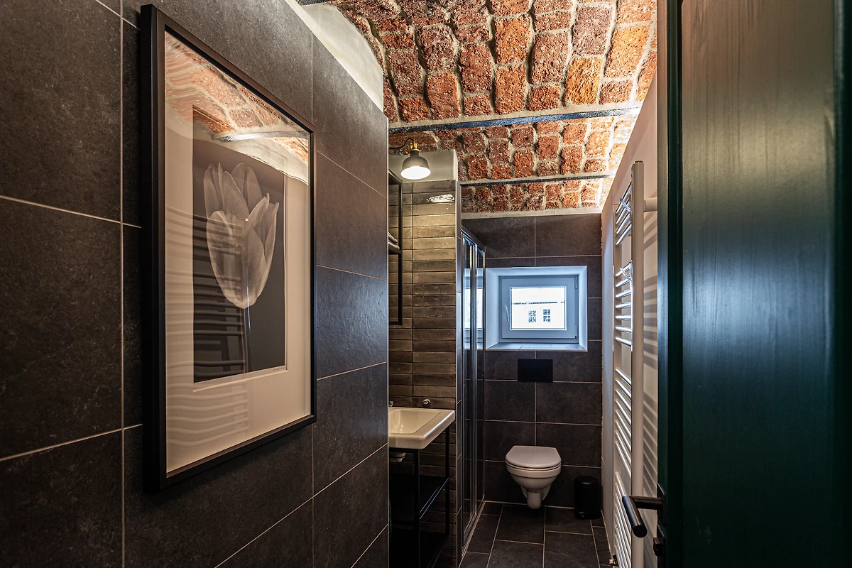 Im Obergeschoss des Hauses befinden sich 5 Schlafzimmer (2 davon sind Durchgangszimmer). Auf dem Flur gibt es eine Dusche und ein WC.