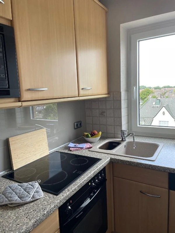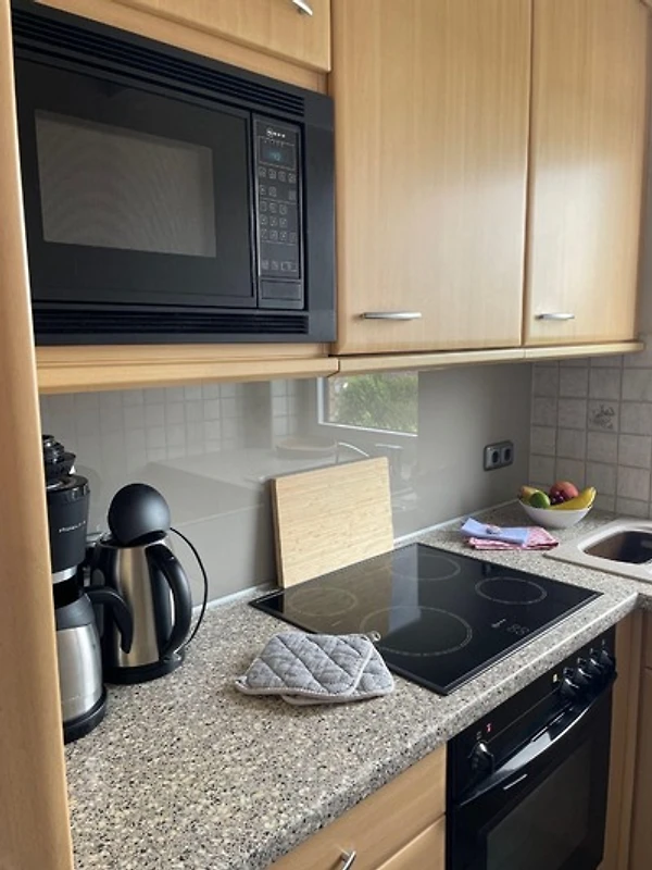 Die Küche ist vollständig mit Ceranherd, Backofen, Mikrowelle, Geschirrspüler, Kaffeemaschine und Wasserkocher ausgestattet. Ebenfalls finden Sie hier einen Wäschetrockner.