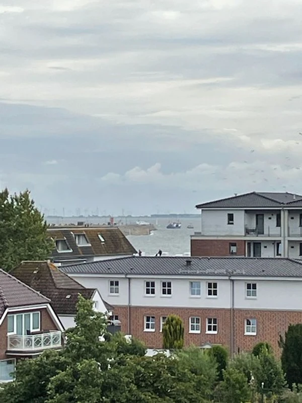 Der Balkon bieten Ihnen einen herrlichen Ausblick über die Dächer von Büsum sowie den seitlichen Blick auf die Nordsee und die Hafeneinfahrt.