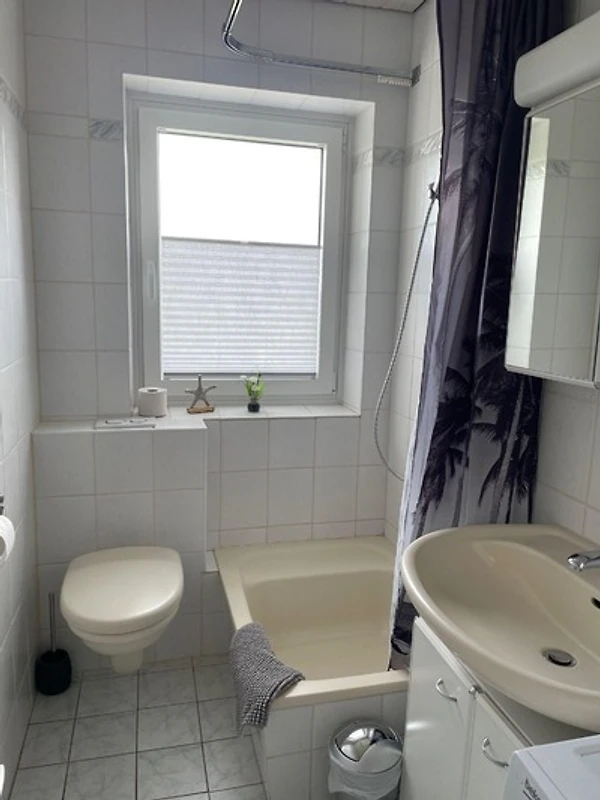 Im Tageslichtbad mit Dusche steht eine Waschmaschine zur Verfügung.