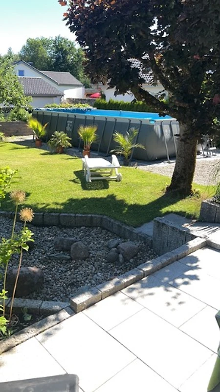 Der grosszügige Garten mit Grillstelle und Pool lädt ein seine Seele baumeln zu lassen. Die Ferienwohnung ist puristisch ausgestattet mit allem was so braucht.