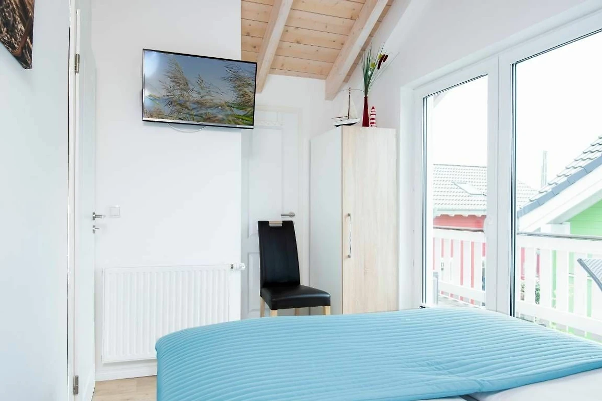 Freuen Sie sich auf zwei charmante Schlafzimmer mit hochwertigen Boxspringbetten (160x200 cm), Verdunkelungsplissees und eigenen Smart-TVs. Vom Balkon aus genießen Sie die frische Ostseeluft gleich nach dem Aufstehen. Ein Schlafzimmer bietet zusätzlich ein Einzelbett (80x200 cm). Treppengitter oben und unten sorgen für Sicherheit für Familien mit kleinen Kindern. Für Familien mit Kindern sorgen Treppengitter und ein durchdachtes Raumkonzept für zusätzliche Sicherheit und Entspannung.