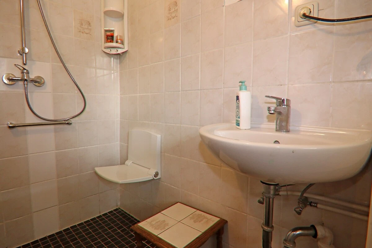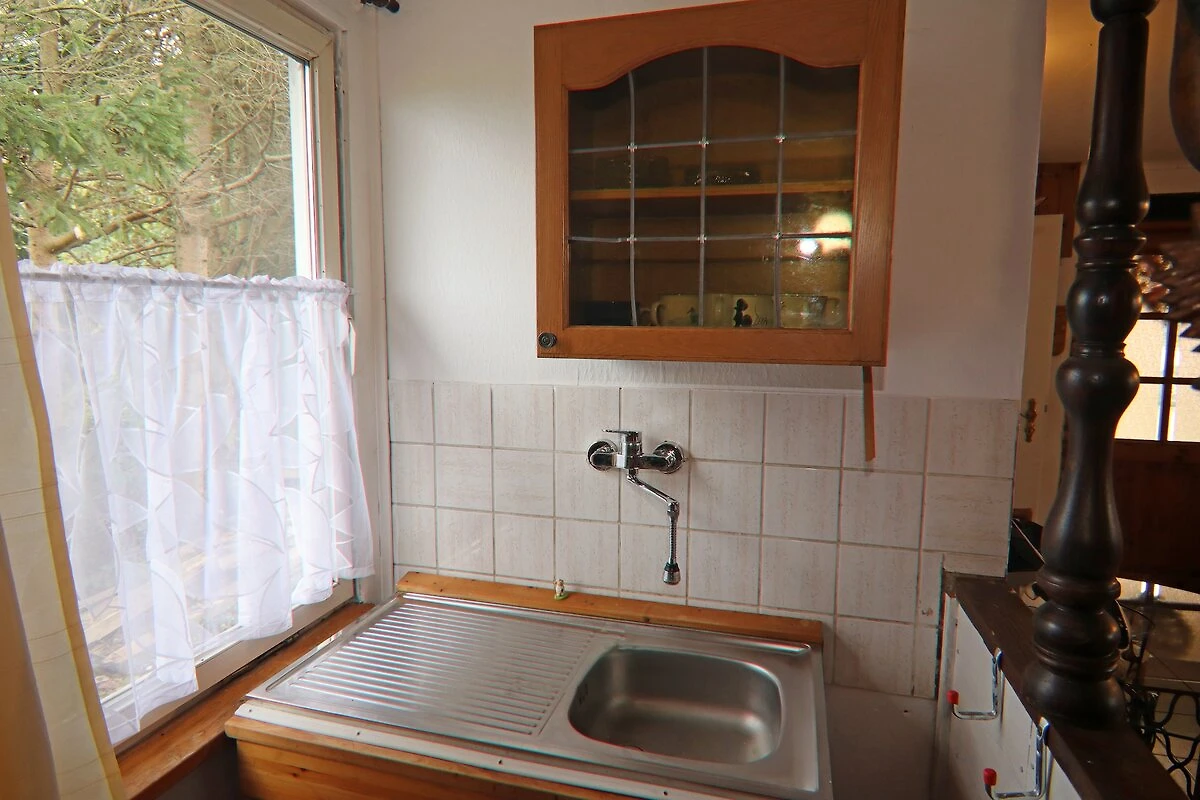 Parterre: (Küche(Kochplatte(elektrisch), Wasserkocher, Toaster, Kaffeemaschine, Kühlschrank(+ Gefrierfach)), Wohn-/Schlafzimmer(Doppelbett king size, TV, Esstisch, Kaminofen, Sitzecke), Badezimmer(Dusche(ebenerdige Dusche), Waschbecken, Toilette), Heizung, Kinderbett, Hochstuhl)