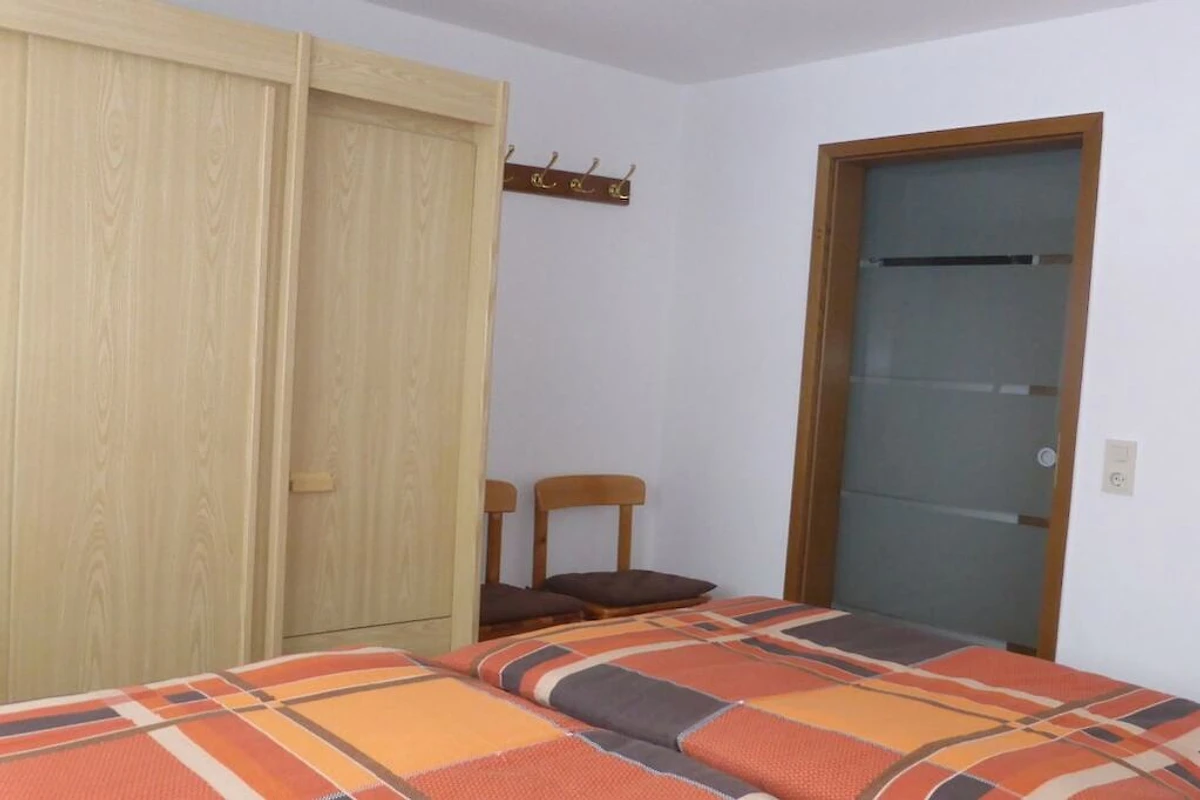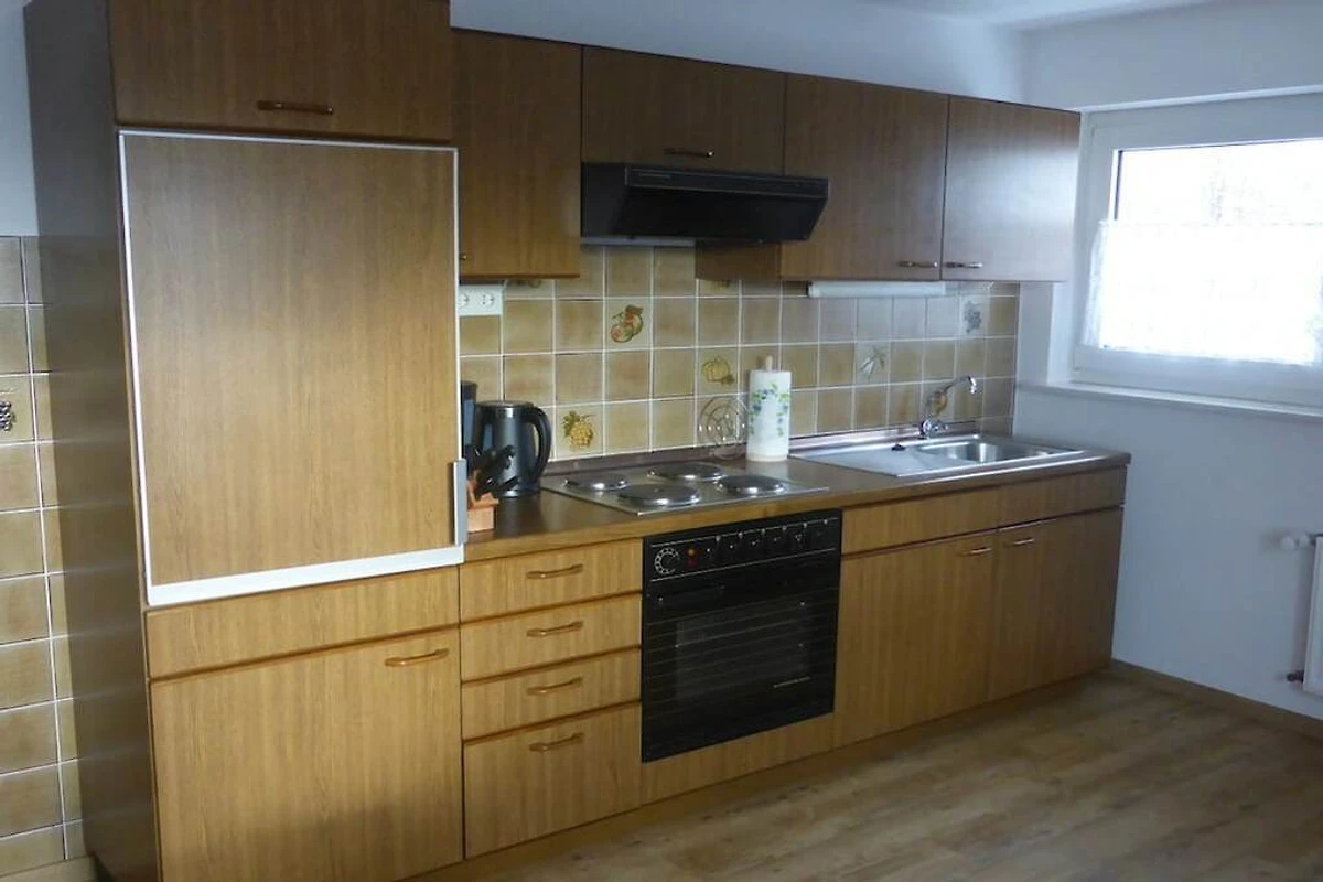 Die Ferienwohnung besteht aus einem Schlafzimmer, einem neuen Badezimmer und einem Wohnraum mit komplett, eingerichteter Küche.