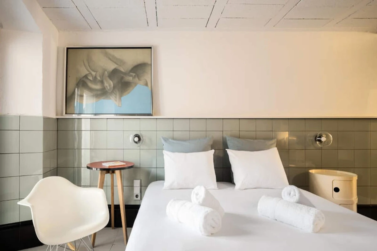 Tauchen Sie ein in eine Welt voller lebendigem Charme und Retro-Eleganz im Majordoms Retrocentric, einem einzigartigen zweistöckigen Mini-Loft im Herzen von Banyoles. Diese Unterkunft zelebriert Mid-Century-Design, verspielte Exzentrik und kräftige Farben und bietet eine warme und einladende Atmosphäre für Alleinreisende oder Paare, die einen außergewöhnlichen Rückzugsort suchen. Schon beim Betreten werden Sie von den liebevollen Details und kreativen Akzenten begeistert sein, die diesen Ort so besonders machen. Im Erdgeschoss befindet sich ein offenes Schlafzimmer mit angrenzendem Badezimmer, ausgestattet mit einer modernen Dusche und integriertem WC – stilvoll und funktional zugleich. Im ersten Stock erwartet Sie ein heller Wohn- und Essbereich mit fließendem Übergang zu einer voll ausgestatteten Küche, die sich perfekt für die Zubereitung von Mahlzeiten eignet. Treten Sie hinaus auf Ihre private Terrasse – eine Oase der Ruhe, ideal für den Morgenkaffee oder einen Drink am Abend unter dem Sternenhimmel. Jeder Winkel dieses Lofts wurde sorgfältig gestaltet, um maximalen Komfort und ästhetischen Reiz zu bieten und modernen Komfort mit einem einladenden Ambiente zu verbinden. Nur wenige Schritte von der Plaça Major entfernt, liegt Majordoms Retrocentric mitten im historischen Charme von Banyoles. Schlendern Sie durch die kopfsteingepflasterten Gassen mit ihren Boutiquen und Cafés oder unternehmen Sie einen gemütlichen 20-minütigen Spaziergang zum Banyoles-See, wo Sie entspannen oder Aktivitäten wie Rudern und Radfahren nachgehen können. Ganz in der Nähe bietet der Neolithische Park La Draga einen faszinierenden Einblick in die Antike, während die Sandstrände von L’Escala und L’Estartit ideal für einen Tagesausflug sind. Girona, Figueres und die Costa Brava sind alle schnell zu erreichen, was dieses Loft zum idealen Ausgangspunkt für die Erkundung der Region macht. Ob Wochenendtrip oder längerer Aufenthalt – Majordoms Retrocentric verspricht ein unvergessliches Erlebnis. Mit seinem stilvollen Design, der erstklassigen Lage und den durchdachten Annehmlichkeiten ist es mehr als nur eine Unterkunft – es ist ein Ort zum Wohlfühlen. Buchen Sie noch heute und entdecken Sie den Zauber von Banyoles in diesem außergewöhnlichen Refugium.