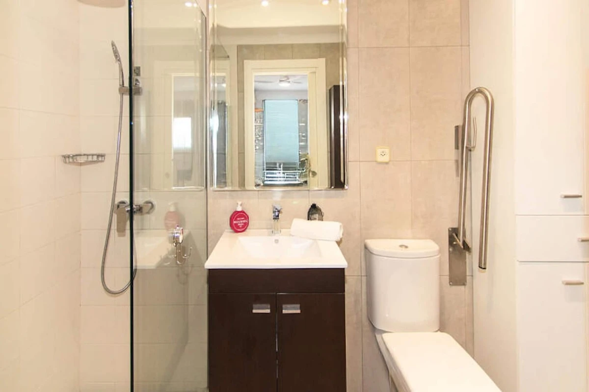 Im Herzen des malerischen Küstenortes Palamós, nur 300 Meter vom goldenen Sandstrand des Mittelmeers entfernt, bietet dieses einladende 40 m² große Apartment einen gemütlichen Rückzugsort für bis zu vier Gäste. Ob Familienurlaub oder romantische Auszeit – diese Unterkunft vereint Komfort mit dem Charme des lebendigen katalanischen Küstenlebens. Treten Sie ein und entdecken Sie einen durchdacht gestalteten Wohnbereich mit einer voll ausgestatteten Wohnküche. Entspannen Sie sich auf dem bequemen Schlafsofa und genießen Sie Ihre Lieblingssendungen im Fernsehen oder versammeln Sie sich am Esstisch, um gemeinsam zu essen und von Ihren Erlebnissen des Tages zu erzählen. Das Apartment verfügt über zwei Schlafzimmer: eines mit einem komfortablen Doppelbett für erholsame Nächte und ein weiteres mit einem Etagenbett, ideal für Kinder oder zusätzliche Gäste. Ein modernes Badezimmer mit ebenerdiger Dusche sorgt für Komfort, und die Parkmöglichkeiten bieten zusätzlichen Komfort. Gäste haben außerdem Zugang zu einem ganzjährig geöffneten Gemeinschaftspool, der nach einem erlebnisreichen Tag für Erfrischung sorgt. Die erstklassige Lage der Wohnung ermöglicht es Ihnen, die lebhaften Cafés, Restaurants und Geschäfte von Palamós bequem zu Fuß zu erreichen. Hier können Sie authentische katalanische Küche genießen und die herzliche, einladende Atmosphäre des Ortes auf sich wirken lassen. Der nahegelegene Strand lädt zum Sonnenbaden, zu einem erfrischenden Bad im Meer oder zu einem entspannten Spaziergang am Meer ein.