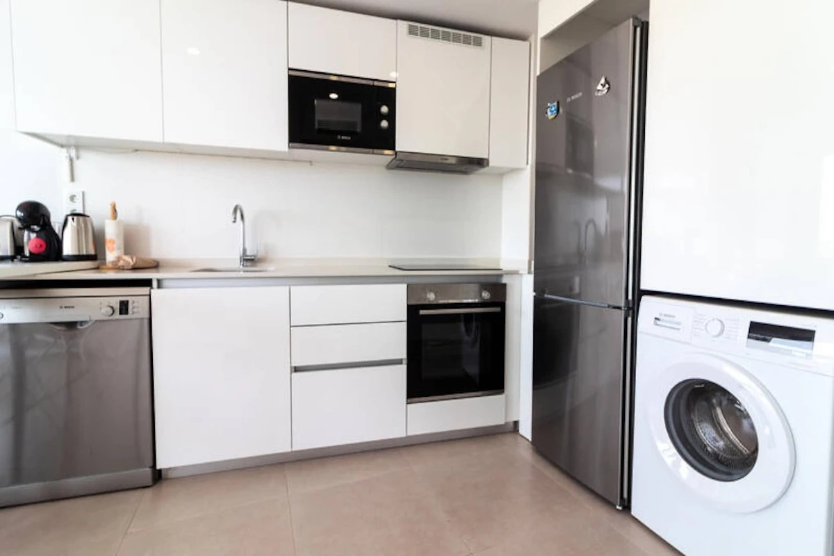 Das 52 m² große Apartment ist durchdacht gestaltet und verfügt über zwei gemütliche Schlafzimmer sowie eine Reihe von Annehmlichkeiten für einen erholsamen Aufenthalt. Der klimatisierte Wohnbereich bietet eine offene Küche im amerikanischen Stil mit Cerankochfeld, Kühlschrank, Mikrowelle, Backofen, Geschirrspüler und vielem mehr, sodass die Zubereitung von Mahlzeiten zum Kinderspiel wird. Der Wohnbereich öffnet sich zu einer geräumigen Terrasse, die sich perfekt zum Essen im Freien oder zum Entspannen mit einem guten Buch eignet. Zu den weiteren Annehmlichkeiten gehören WLAN, eine Waschmaschine, ein Haartrockner und ein überdachter Parkplatz im Gebäude.
