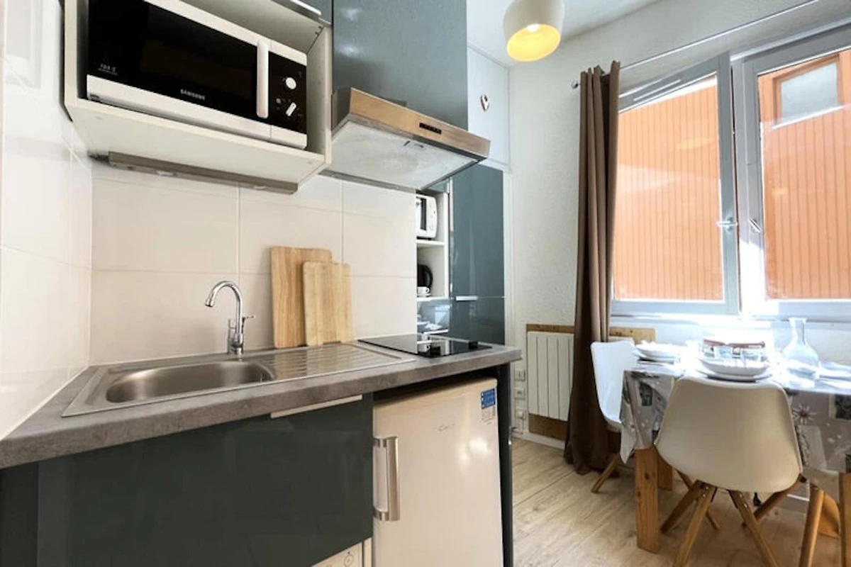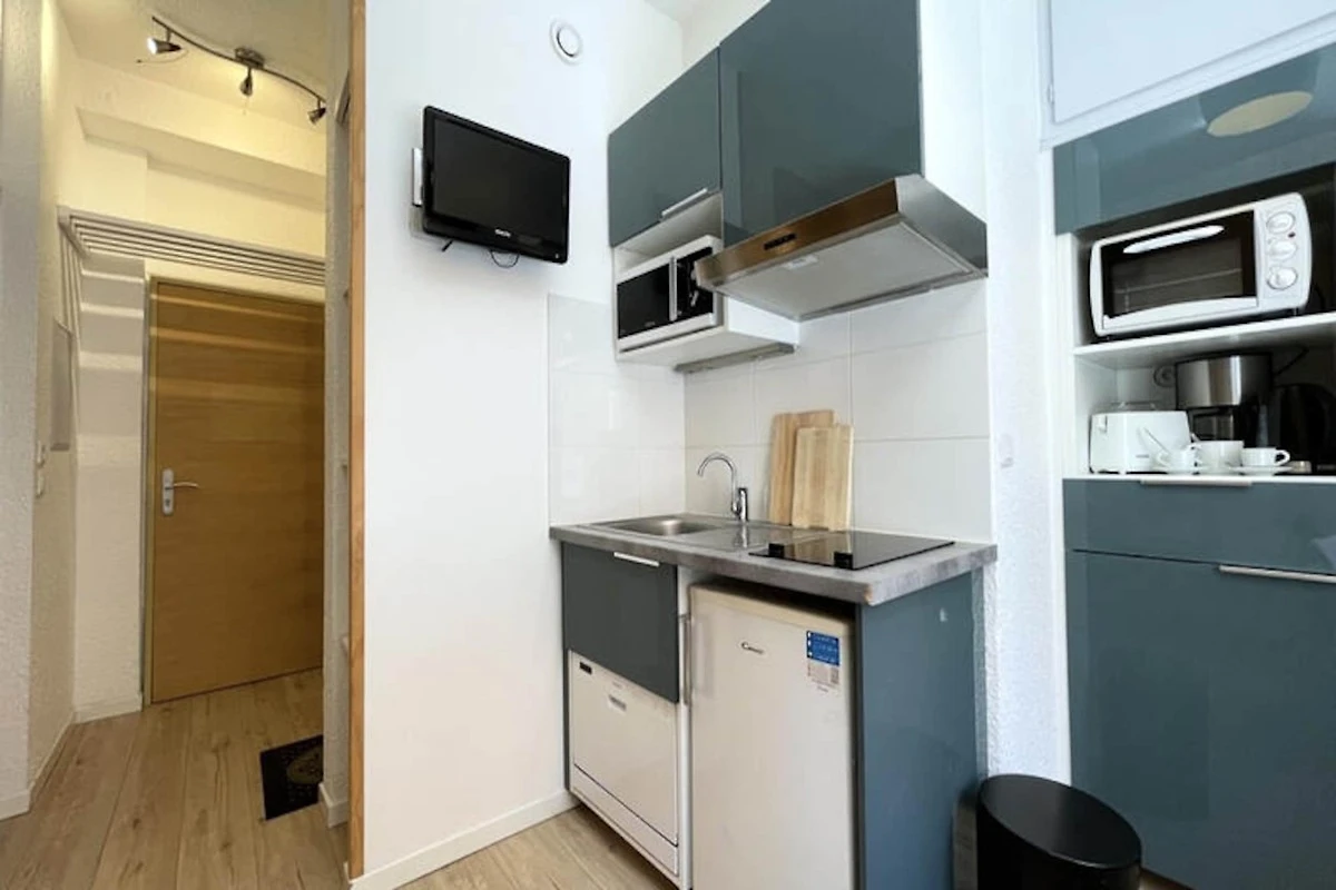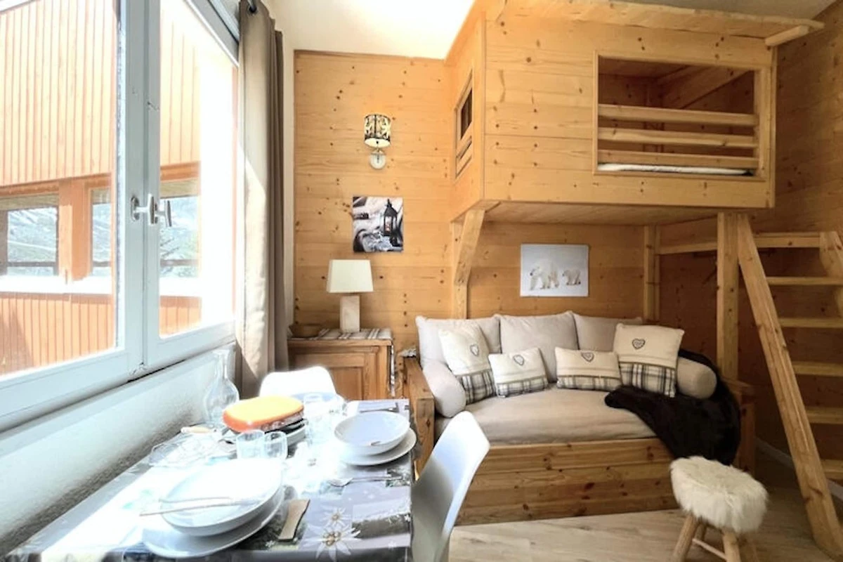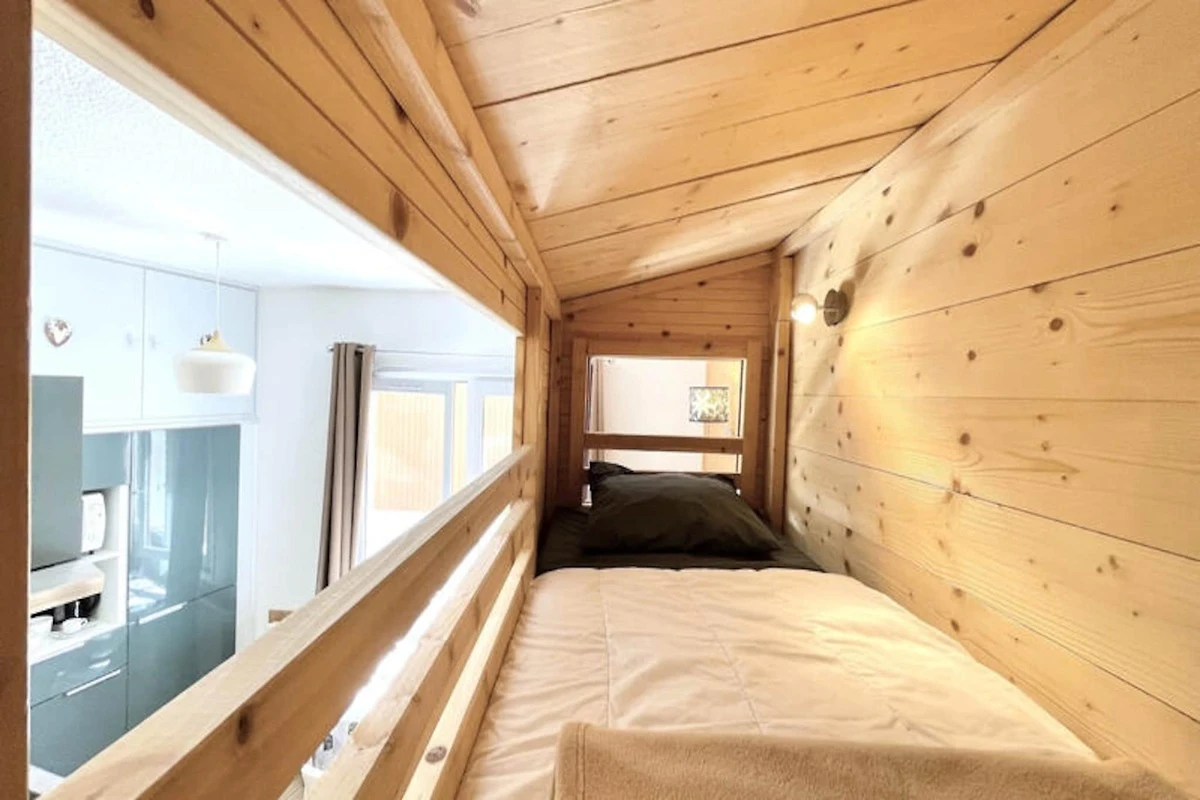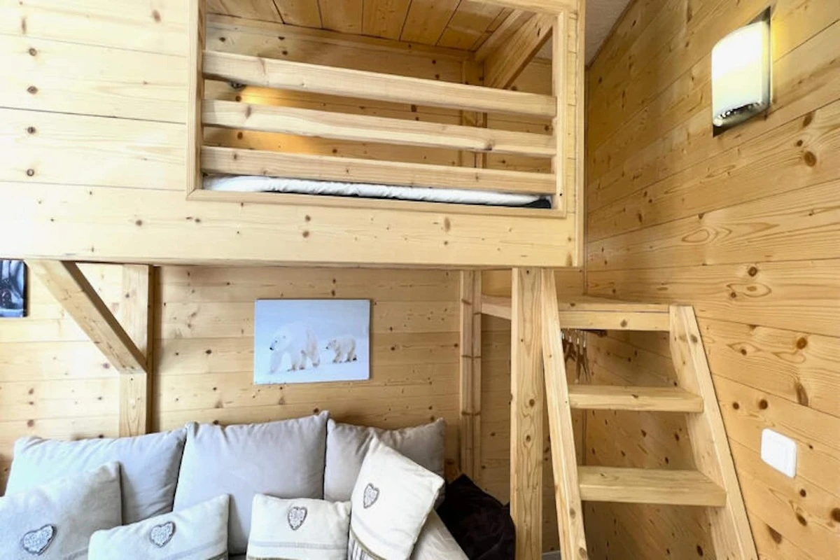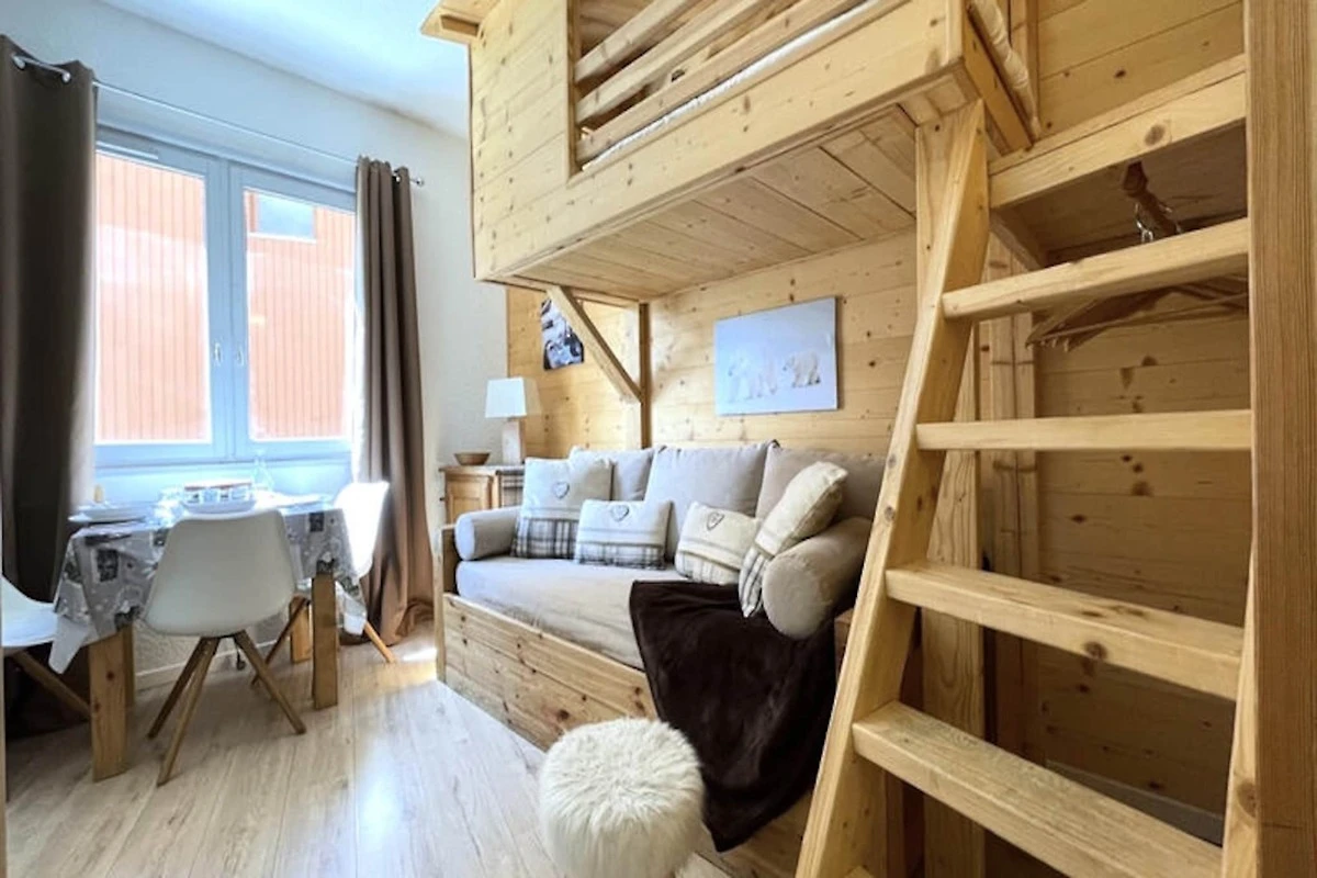 Mitten in Les Menuires bietet dieses charmante 19 m² große Apartment in der Residenz Boedette A einen gemütlichen Rückzugsort in den Bergen für bis zu drei Gäste. Die perfekte Lage direkt an den Skipisten sorgt für unvergleichlichen Komfort für Wintersportbegeisterte. Die Residenz selbst verfügt über moderne Annehmlichkeiten wie einen Aufzug und private Skischränke, die einen reibungslosen und stressfreien Aufenthalt in den Bergen garantieren. Treten Sie vor die Tür und Sie befinden sich direkt auf den Pisten und können den Nervenkitzel des Skigebiets Trois Vallées in vollen Zügen genießen. \n\nDas Apartment wurde liebevoll im warmen Chalet-Stil renoviert und vereint rustikalen Charme mit funktionalem Design. Der Wohnbereich bietet ein bequemes Schlafsofa und ein Ausziehbett (beide 80 x 190 cm) sowie ein gemütliches Hochbett (75 x 185 cm) und ist somit ideal für Paare oder kleine Familien. Die voll ausgestattete Küchenzeile umfasst ein Cerankochfeld, einen Kühlschrank, eine Mikrowelle, einen Backofen, einen Geschirrspüler und alles, was Sie für die Zubereitung leckerer Mahlzeiten nach einem Tag auf der Piste benötigen. Das Badezimmer verfügt über eine entspannende Badewanne und ein separates WC für zusätzlichen Komfort. Obwohl das Apartment kein WLAN bietet, machen die gemütliche Atmosphäre und die durchdachten Annehmlichkeiten es zu einem wunderbaren Rückzugsort vom Alltag. Les Menuires ist ein lebendiger Ort mit einer Fülle an Aktivitäten und Attraktionen abseits des Skifahrens. Von malerischen Wanderwegen im Sommer bis hin zu lebhaften Après-Ski-Angeboten im Winter – hier ist für jeden etwas dabei. Die nahegelegenen Geschäfte, Restaurants und Skischulen sorgen dafür, dass Sie alles Notwendige bequem erreichen. Ob Sie nun im Tiefschnee Ihre Schwünge ziehen oder einfach nur die atemberaubende Alpenkulisse genießen möchten – dieses Apartment ist Ihr Tor zu einem unvergesslichen Bergabenteuer.