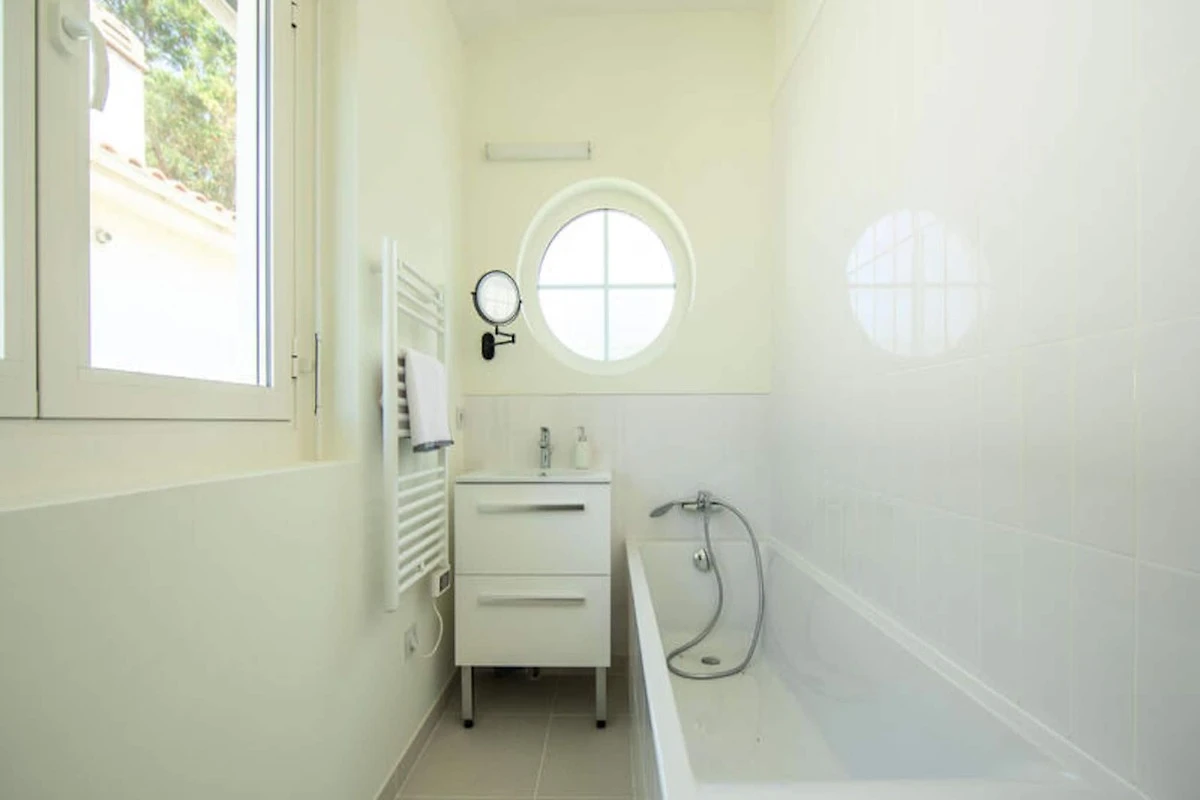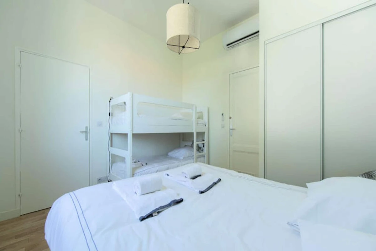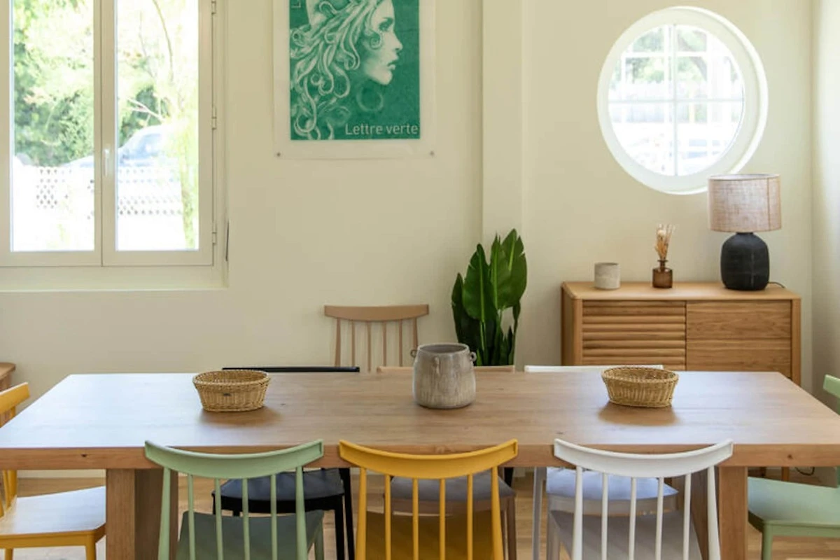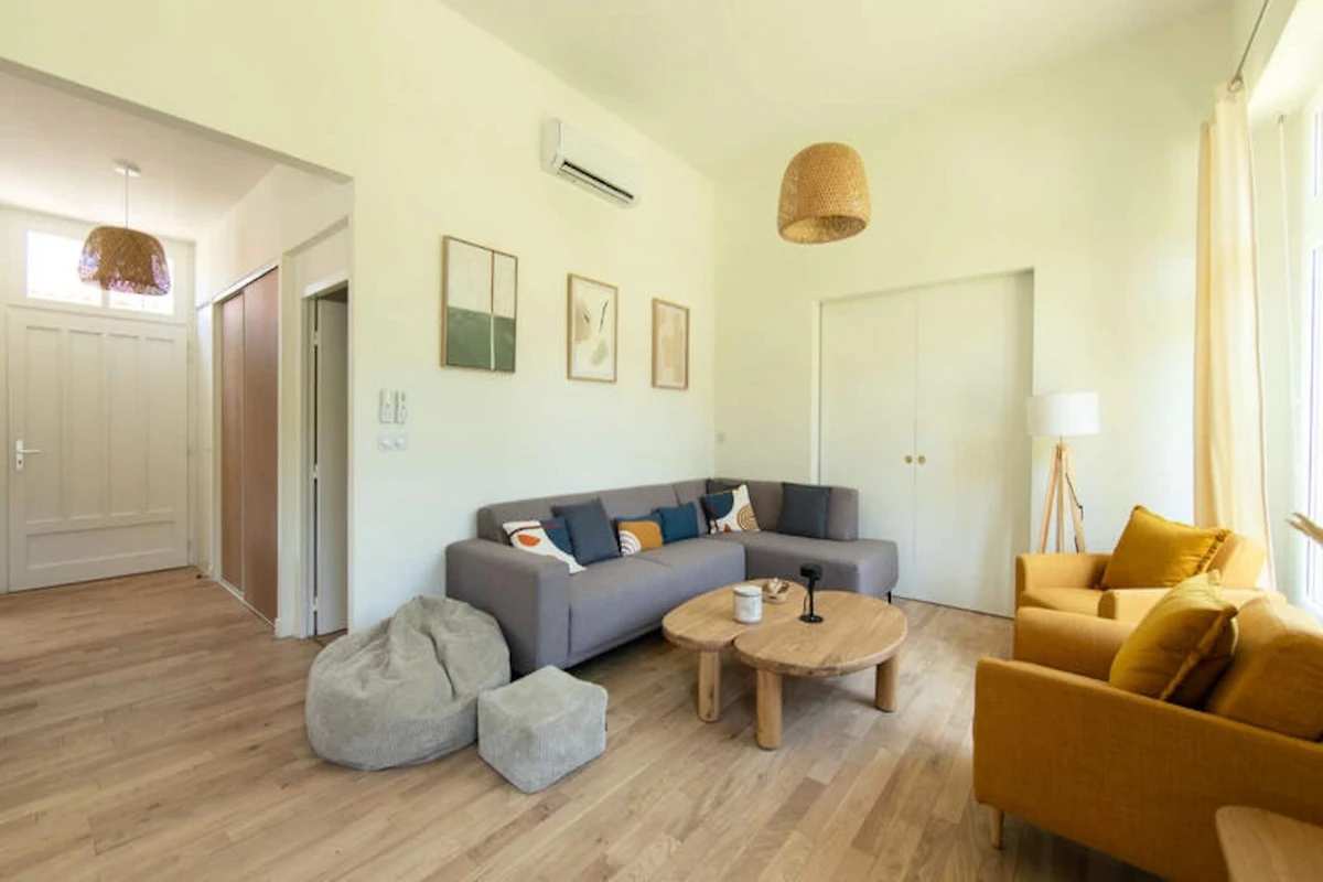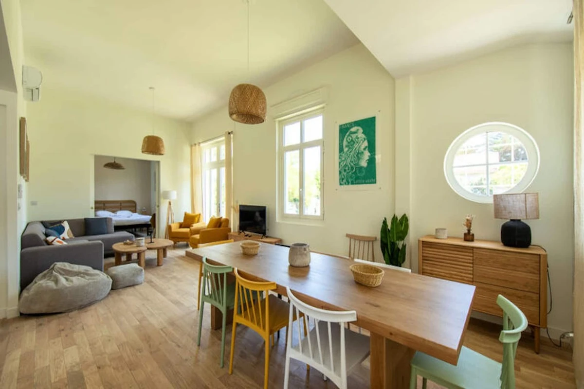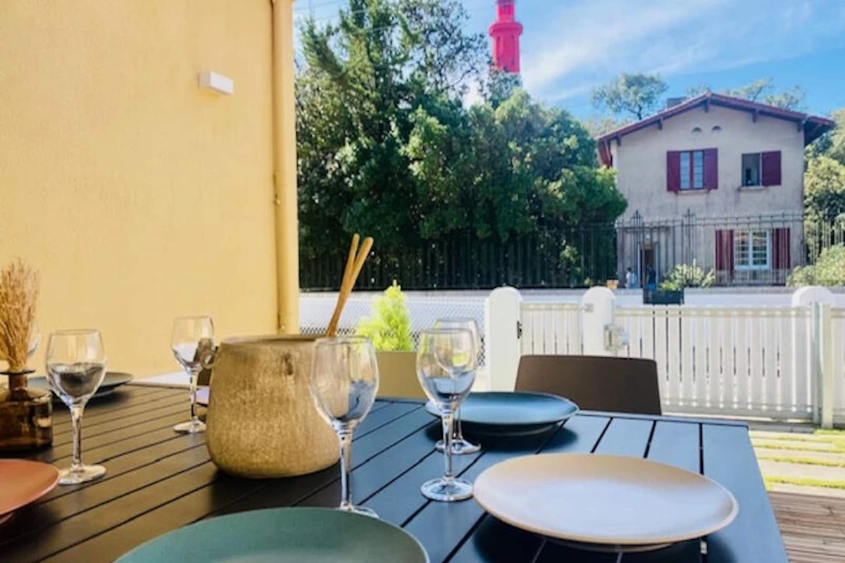 Unter dem wachsamen Blick des ikonischen Leuchtturms Ferret lädt dieses charmante Haus Sie ein, den zeitlosen Zauber des Arcachon-Beckens zu erleben. Kürzlich renoviert, verbindet es nahtlos die Eleganz modernen Designs mit dem authentischen Charakter seiner ursprünglichen Architektur und bietet einen einzigartigen Rückzugsort für bis zu 10 Gäste. Ob Sie Ruhe und Erholung oder ein lebhaftes Abenteuer am Meer suchen – dieses Haus ist der perfekte Ausgangspunkt für Ihren Aufenthalt. \n\nIm Inneren erwartet Sie ein großzügiger Wohnbereich mit offener Küche, die ein Paradies für Kochbegeisterte ist. Ausgestattet mit modernen Geräten wie Induktionskochfeld, Backofen, Mikrowelle und Kühl-/Gefrierkombination, ist sie ideal, um köstliche Mahlzeiten zuzubereiten, die Sie am schönen Holzesstisch genießen können. Vier liebevoll gestaltete Schlafzimmer mit komfortablen Betten und jeweils eigenem oder gemeinsamem Badezimmer garantieren erholsame Nächte für alle. Die familienfreundliche Raumaufteilung umfasst Etagenbetten und flexible Schlafmöglichkeiten, während die gemütliche TV-Lounge der perfekte Ort zum Entspannen nach einem erlebnisreichen Tag ist. Für alle, die Arbeit und Freizeit verbinden möchten, stehen drei separate Arbeitsbereiche zur Verfügung. Treten Sie hinaus und entdecken Sie einen privaten Garten mit Gartenmöbeln, Grill und Grillplatte für Mahlzeiten im Freien. Das Haus ist vollklimatisiert und bietet Annehmlichkeiten wie einen Hauswirtschaftsraum mit Waschmaschine und Trockner, einen Hochstuhl, einen Sonnenschirm und Parkplätze für zwei Fahrzeuge. Nur 30 Meter vom Leuchtturm Ferret und wenige Schritte vom Strand Centre, lokalen Märkten und renommierten Restaurants entfernt, befindet sich diese Unterkunft mitten im lebendigen Charme von Lège-Cap-Ferret. Erkunden Sie das nahegelegene Fischerdorf, genießen Sie frische Austern oder radeln Sie zur Spitze der Halbinsel und genießen Sie den atemberaubenden Meerblick. Ob Sie sich von den Wellen des Atlantiks oder den ruhigen Gewässern des Beckens angezogen fühlen – dieses Reiseziel verspricht unvergessliche Momente an der französischen Küste.
