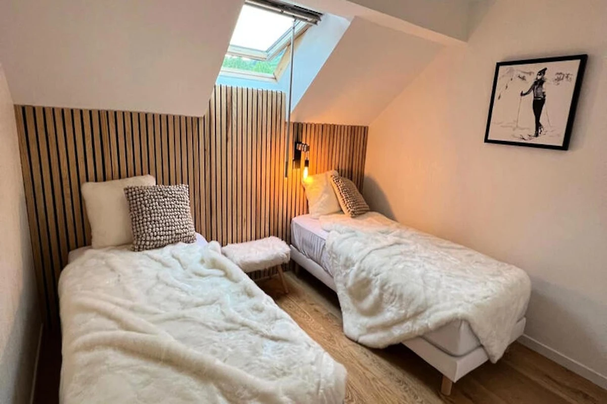 Das Apartment verfügt über einen großzügigen Wohnbereich mit Zugang zu einem Balkon, der zum Essen im Freien oder zum Entspannen mit einem Buch einlädt. Die offene Küche ist mit hochwertigen Geräten ausgestattet, darunter eine Nespresso-Maschine, ein Backofen und ein Geschirrspüler, sodass Sie alles für einen komfortablen Aufenthalt haben. Im Obergeschoss befinden sich die durchdacht gestalteten Schlafräume: ein Schlafzimmer mit Doppelbett, ein zweites Schlafzimmer mit zwei Einzelbetten, die zu einem Kingsize-Bett zusammengestellt werden können, und ein Schlafsofa im Wohnzimmer. Zwei moderne Badezimmer, eines davon mit ebenerdiger Dusche, tragen zum Komfort und Luxus dieser Unterkunft bei.