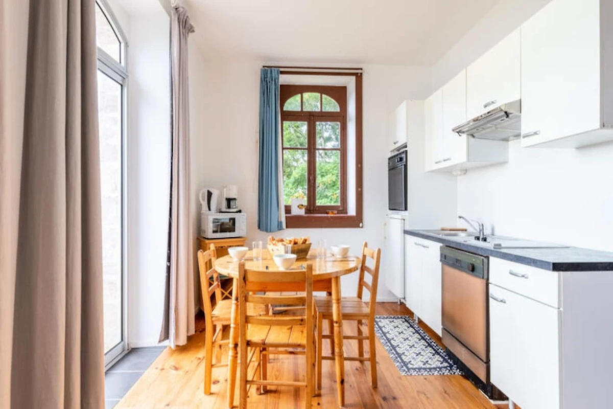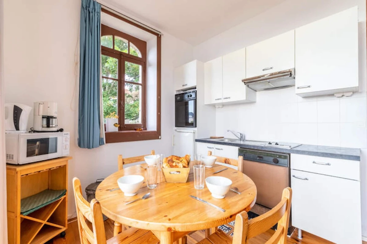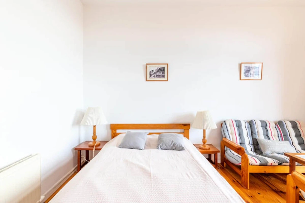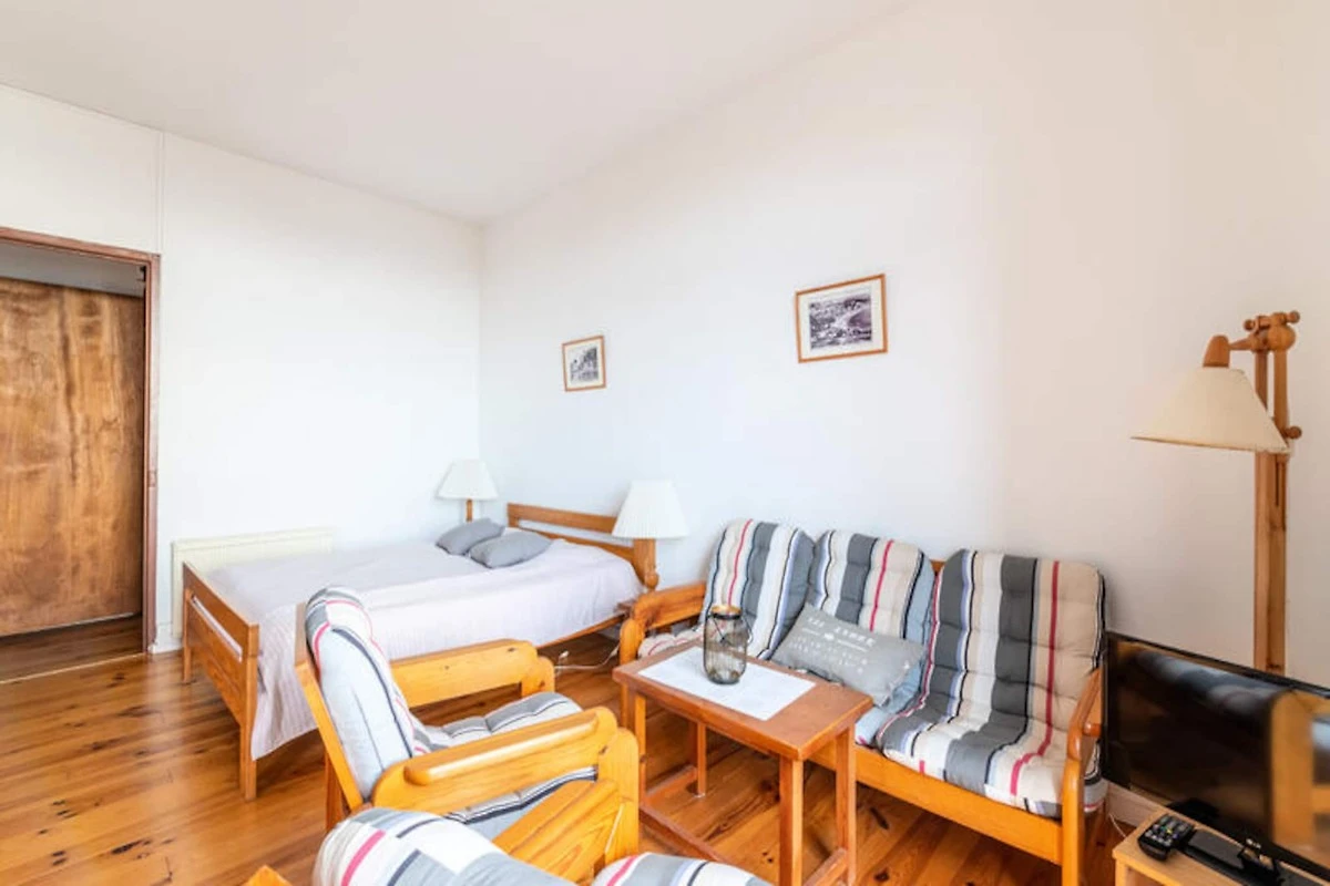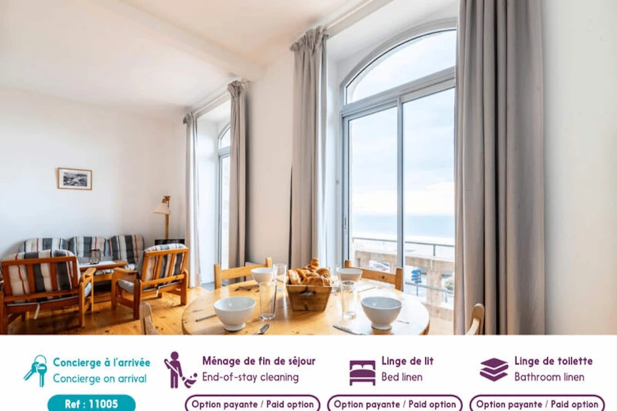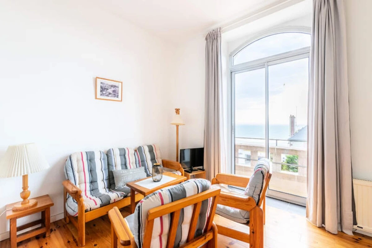 Genießen Sie die sanfte Meeresbrise und lassen Sie sich vom Rhythmus der Wellen durch Ihre Tage begleiten – in diesem charmanten Apartment direkt am Meer in Pléneuf-Val-André. Perfekt gelegen an der berühmten Promenade von Val André, bietet Ihnen dieses gemütliche Refugium einen Logenplatz für die Schönheit der bretonischen Küste. Ob Sie den Sonnenaufgang über dem Meer bewundern oder am nur 50 Meter entfernten Sandstrand entlangspazieren – jeder Moment hier ist von Ruhe und Charme geprägt. \n\nDas 41 m² große Apartment ist durchdacht gestaltet und bietet Platz für bis zu vier Gäste. Das Wohnzimmer mit einem komfortablen Doppelbett, Fernseher und WLAN lädt zum Entspannen nach einem erlebnisreichen Tag ein. Die voll ausgestattete Küche mit Kühlschrank, Backofen, Mikrowelle, Geschirrspüler und vielem mehr ermöglicht Ihnen die mühelose Zubereitung köstlicher Mahlzeiten. Ein separates Schlafzimmer mit Etagenbetten und ein modernes Badezimmer runden den Komfort dieses einladenden Apartments ab. Für Ihren Komfort stehen Ihnen private Parkplätze zur Verfügung.\n\nTreten Sie vor die Tür und tauchen Sie ein in das pulsierende Leben von Pléneuf-Val-André. Genießen Sie eine köstliche Crêpe in der nahegelegenen Crêperie les Régates oder frische Meeresfrüchte im La Croisette – beides nur wenige Gehminuten entfernt. Erkunden Sie den charmanten Hafen von Dahouet, wo bunte Boote und historische Reederhäuser eine malerische Kulisse bilden. Golfliebhaber erreichen den Bluegreen Golfplatz Pléneuf-Val-André nach nur 1 km mit atemberaubender Aussicht und einem anspruchsvollen Platz.\n\nOb Sie Entspannung, Abenteuer am Meer oder kulinarische Genüsse suchen – dieses Apartment ist der perfekte Ausgangspunkt für einen unvergesslichen Aufenthalt. Lassen Sie sich vom Zauber der Bretagne verzaubern und schaffen Sie bleibende Erinnerungen am Meer.