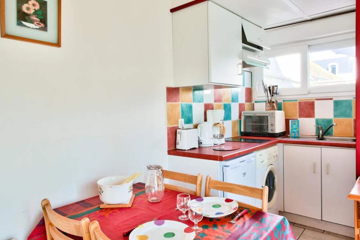 Stellen Sie sich vor, Sie wachen im charmanten Küstenort Penmarc’h, im Herzen der südlichen Bretagne, zum sanften Rauschen der Wellen und dem Duft der salzigen Meeresluft auf. Dieses entzückende 25 m² große Ferienhaus liegt nur 100 Meter vom Meer entfernt und bietet Paaren, die Ruhe und Naturverbundenheit suchen, den perfekten Rückzugsort. Ob Sie am Sandstrand von La Joie entlangspazieren oder die rauen Küstenpfade erkunden – dieser Ort verspricht Entspannung und unvergessliche Momente am Meer. Penmarc’hs authentischer bretonischer Charme mit seinen Fischerdörfern und frischen Meeresfrüchten schafft die ideale Kulisse für ein unvergessliches Erlebnis. Das Haus ist für zwei Personen ausgelegt und verfügt über ein gemütliches Schlafzimmer mit Doppelbett und ein helles Wohnzimmer mit Zugang zu einem privaten Garten. Die farbenfrohe Küche ist mit allem ausgestattet, was Sie benötigen, vom Cerankochfeld bis zum Entsafter, sodass Sie ganz einfach Mahlzeiten mit regionalen Zutaten zubereiten können. Genießen Sie die friedliche Atmosphäre des Gartens und lassen Sie den Tag nach einem erlebnisreichen Tag mit gegrillten Köstlichkeiten ausklingen. Das Badezimmer sorgt für zusätzlichen Komfort und einen angenehmen Aufenthalt. \n\nIn unmittelbarer Nähe finden Sie das Restaurant La Glacière nur 700 Meter entfernt und den Supermarkt Intermarché Contact, wo Sie alles für den täglichen Bedarf finden (innerhalb eines Kilometers). Erkunden Sie die Sandstrände von Pors Carn und Kermabec oder unternehmen Sie einen Ausflug zum Golfplatz Bluegreen l’Odet und in die historische Stadt Quimper. Dank des Concierge-Services, der Ihnen während Ihres gesamten Aufenthalts zur Verfügung steht, wird sich um jedes Detail gekümmert, sodass Sie sich ganz auf unvergessliche Momente konzentrieren können. \n\nEntfliehen Sie dem Alltag in Penmarc’h, wo der Atlantik auf bretonische Gastfreundschaft trifft, und lassen Sie dieses charmante Refugium zu Ihrer Oase der Ruhe und Erholung werden.