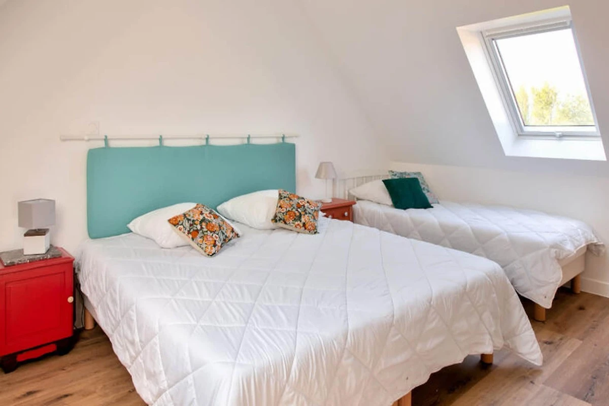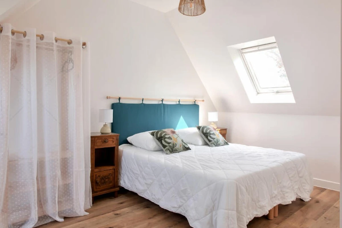 Mitten in der Bucht von Audierne, wo die Meeresbrise auf den Charme der Bretagne trifft, bietet dieses wunderschön restaurierte Bauernhaus eine Oase der Ruhe, nur wenige Minuten vom Meer entfernt. Stellen Sie sich Morgenstunden vor, erfüllt vom Rauschen der Wellen, Nachmittage mit Erkundungen an Sandstränden und Abende unter dem Sternenhimmel in einem üppigen Garten. Dieses Anwesen ist ein Paradies für alle, die Entspannung und Abenteuer in authentischer Küstenatmosphäre suchen. Treten Sie durch das Tor und lassen Sie sich von einem sonnigen Innenhof und einem weitläufigen Garten empfangen – perfekt zum Entspannen oder für unvergessliche Momente mit Ihren Lieben. Das geschmackvoll renovierte Bauernhaus vereint modernen Komfort mit rustikalem Charme. Es bietet Platz für bis zu fünf Gäste und verfügt über ein gemütliches Wohnzimmer für entspannte Abende, eine voll ausgestattete Küche mit allem, was Sie für die Zubereitung köstlicher Mahlzeiten benötigen, und zwei ruhige Schlafzimmer im Obergeschoss für erholsame Nächte. Zwei Badezimmer, eine Waschmaschine und ein Wäschetrockner sorgen für Komfort während Ihres gesamten Aufenthalts. Draußen laden Grill und Sonnenliegen zum Verweilen im Freien ein, während Kinder im Gemeinschaftsgarten unbeschwert spielen können. Nur 1 km vom Sandstrand von Stang Ar Liou und in der Nähe von Surfspots gelegen, ist dieses Anwesen ein Traum für Strandliebhaber. In der Umgebung finden Sie Restaurants, Supermärkte und Attraktionen wie den Wasserpark AquaSud und die kulturellen Schätze von Quimper, nur 25 km entfernt. Golfbegeisterte erreichen den Golfplatz von Kerbernez ebenfalls schnell. Die Wander- und Radwege der Region, darunter die berühmte La Littorale, laden dazu ein, die wilde Schönheit und das reiche Erbe der Bucht von Audierne zu entdecken. Ob Sie sich vom Ruf der Wellen, dem Reiz der bretonischen Landschaft oder der Aussicht auf ruhige Tage in einem charmanten Bauernhaus angezogen fühlen – dieses Anwesen verspricht einen unvergesslichen Aufenthalt. Dank des Concierge-Services, der Ihnen während Ihres gesamten Aufenthalts zur Verfügung steht, wird sich um jedes Detail gekümmert, sodass Sie sich ganz auf das Sammeln bleibender Erinnerungen konzentrieren können.