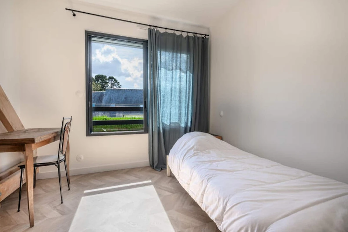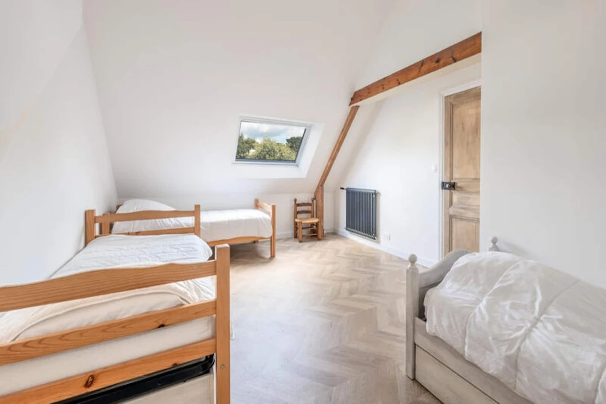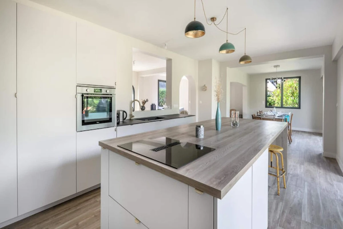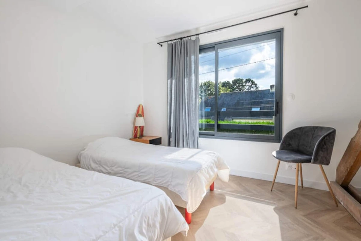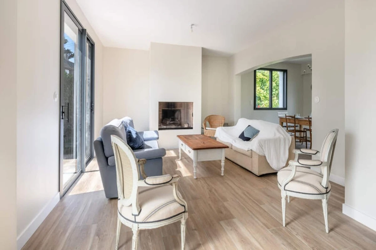 An der glitzernden Côte d'Amour lädt dieses geräumige Familienhaus zu einem perfekten Urlaub am Meer ein. Umgeben von einem geschützten Garten bietet das Anwesen Ruhe und Privatsphäre und ist somit ideal für Familien oder Gruppen, die unvergessliche Momente miteinander verbringen möchten. Mit Platz für bis zu 9 Erwachsene, 3 Kinder und ein Baby sorgt das durchdachte Design des Hauses für Komfort und Entspannung für alle. Stellen Sie sich Morgenstunden mit einer Tasse Kaffee auf der Terrasse, Nachmittage mit Erkundungstouren an den nahegelegenen Stränden und Abende voller Lachen am Esstisch vor. Hier entstehen Erinnerungen. \n\nIm Inneren des 190 m² großen Hauses erwartet Sie ein moderner Wohnbereich mit geschmackvoller Einrichtung und einladender Atmosphäre. Die voll ausgestattete Küche verfügt über moderne Geräte wie Induktionskochfeld, Backofen, Kühlschrank und Geschirrspüler sowie über Küchenutensilien wie Wasserkocher, Toaster und Kaffeemaschine. Der Essbereich mit seinem großen Holztisch geht fließend in das Wohnzimmer über und schafft so einen warmen und geselligen Raum. Der Verzicht auf einen Fernseher lädt zu angeregten Gesprächen, zum Lesen oder zu Brettspielen ein. Das Erdgeschoss verfügt über zwei Schlafzimmer, eines mit Doppelbett und Gartenblick und das andere mit einem flexiblen Ausziehbett. Im Obergeschoss bieten vier weitere Schlafzimmer für unterschiedliche Bedürfnisse Optionen, darunter Kingsize-Betten und gemütliche Einzelbetten. Nur 300 Meter vom Strand Moulin und in Gehweite der Strände Toul'Ru und Lanséria gelegen, ist dieses Haus der perfekte Ausgangspunkt für Küstenabenteuer. Der nahegelegene Küstenwanderweg GR 34 bietet atemberaubende Ausblicke und Wandermöglichkeiten, während Radwege zu den Marschlandschaften von Mesquer und den Salinen von Guérande führen. Für Wassersportbegeisterte ist eine Kajaktour entlang der zerklüfteten Küste ein absolutes Muss. Lokale Restaurants, Geschäfte und Golfplätze sind bequem zu erreichen und sorgen für Komfort und Abwechslung während Ihres Aufenthalts. Ob Sie Entspannung oder Abenteuer suchen, diese Unterkunft bietet das Beste der Côte d'Amour. Mit einem Concierge-Service und inklusivem WLAN ist jedes Detail darauf ausgerichtet, Ihren Urlaub reibungslos und unvergesslich zu gestalten. Lassen Sie sich von der Schönheit der französischen Küste zu Ihrem nächsten Urlaub inspirieren.