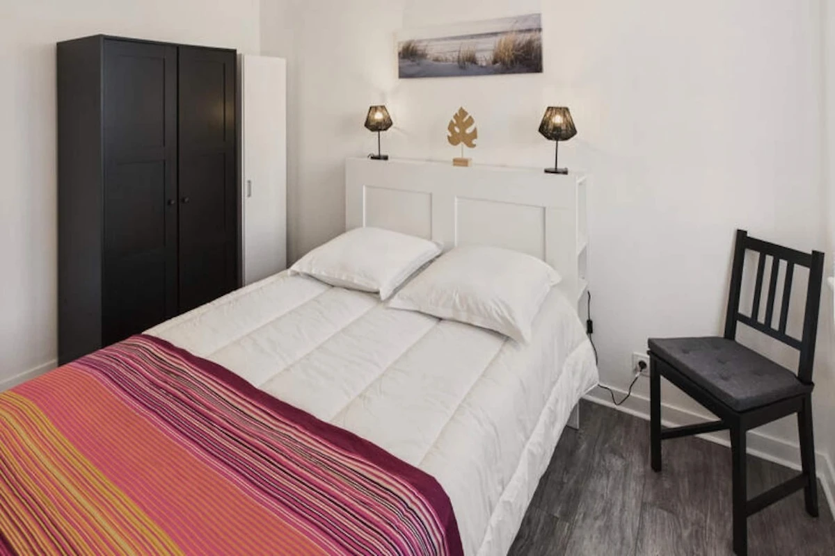 Im Herzen des charmanten Lodonnec-Viertels Loctudy lädt dieses reizende Erdgeschoss-Apartment Sie ein, Entspannung und Abenteuer in perfekter Harmonie zu erleben. Nur 5 Gehminuten vom Strand entfernt, bietet es bequemen Zugang zum bekannten Küstenwanderweg GR34, der zum weitläufigen Strand von Sables Blancs führt (nur 3 km entfernt). Ob Sie die erfrischende Meeresbrise genießen oder sich für Wassersportarten wie Stand-Up-Paddling, Segeln oder Kajakfahren begeistern – diese Lage verspricht unvergessliche Momente am Meer. Feinschmecker werden die fangfrischen Meeresfrüchte aus dem Hafen lieben, während die lebhaften Märkte von Pont-l’Abbé und Loctudy Ihrem Aufenthalt einen Hauch von regionalem Charme verleihen. Treten Sie ein und entdecken Sie einen hellen und einladenden Wohnbereich mit Zugang zu einem 9 m² großen privaten Balkon – ideal zum Essen im Freien oder zum Entspannen nach einem erlebnisreichen Tag. Die moderne offene Küche ist komplett ausgestattet mit Kühlschrank, Backofen, Mikrowelle und Kaffeemaschine, sodass Sie im Handumdrehen köstliche Mahlzeiten zubereiten können. Der gemütliche Wohnbereich mit seinem bequemen Sofa und Fernseher lädt zum Verweilen mit Familie oder Freunden ein. Zwei komfortable Schlafzimmer, jeweils mit Doppelbett und Kleiderschrank, bieten erholsame Ruheoasen für bis zu vier Gäste. Das Apartment verfügt außerdem über ein modernes Badezimmer mit Dusche und Haartrockner sowie ein separates WC.