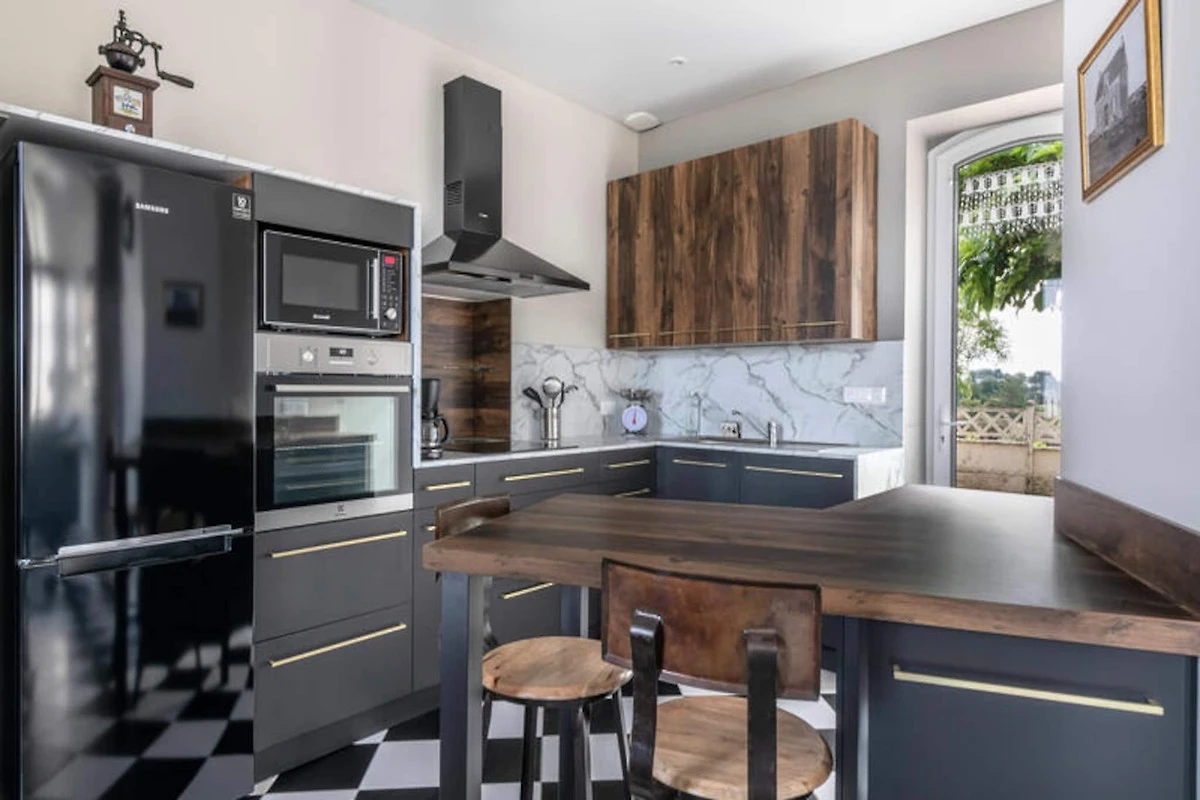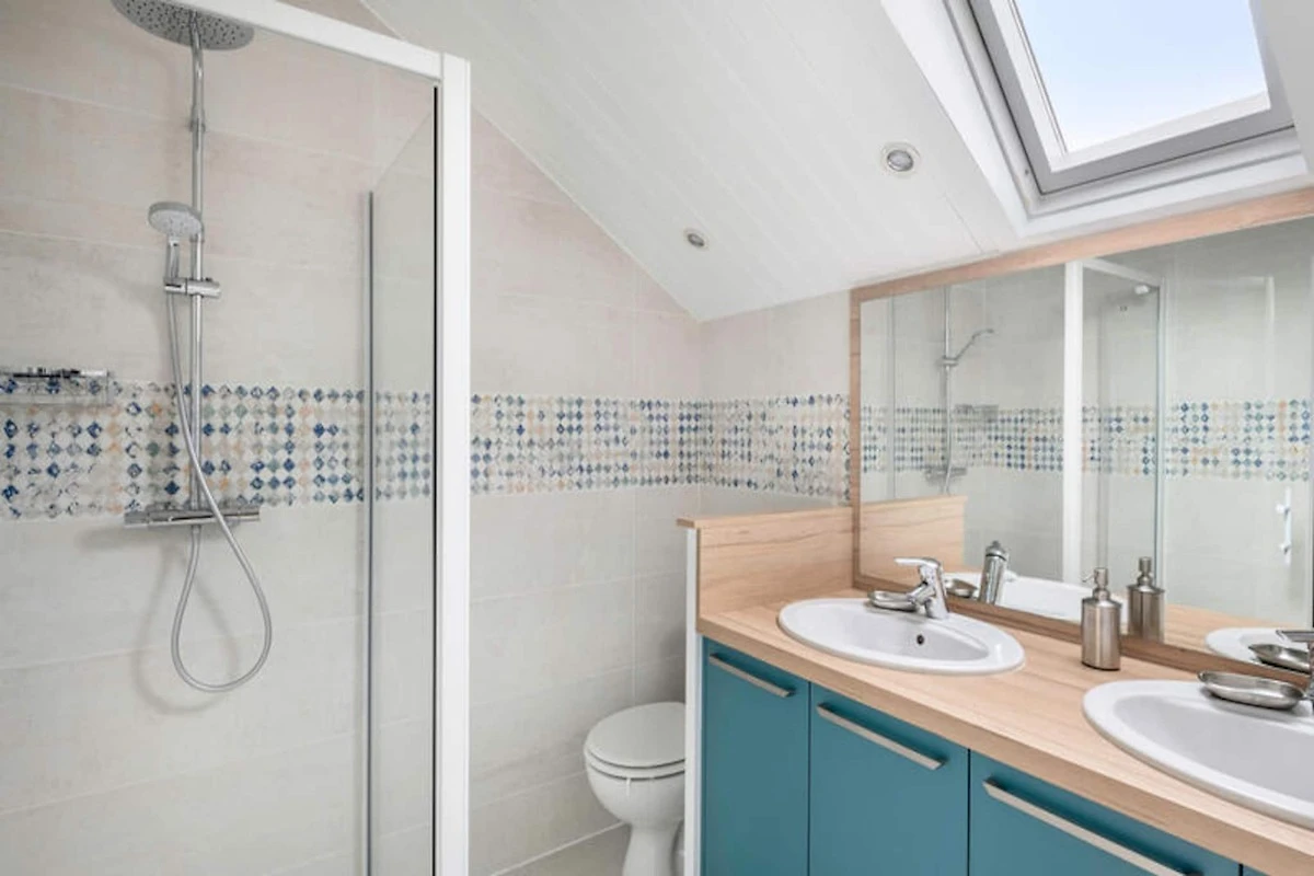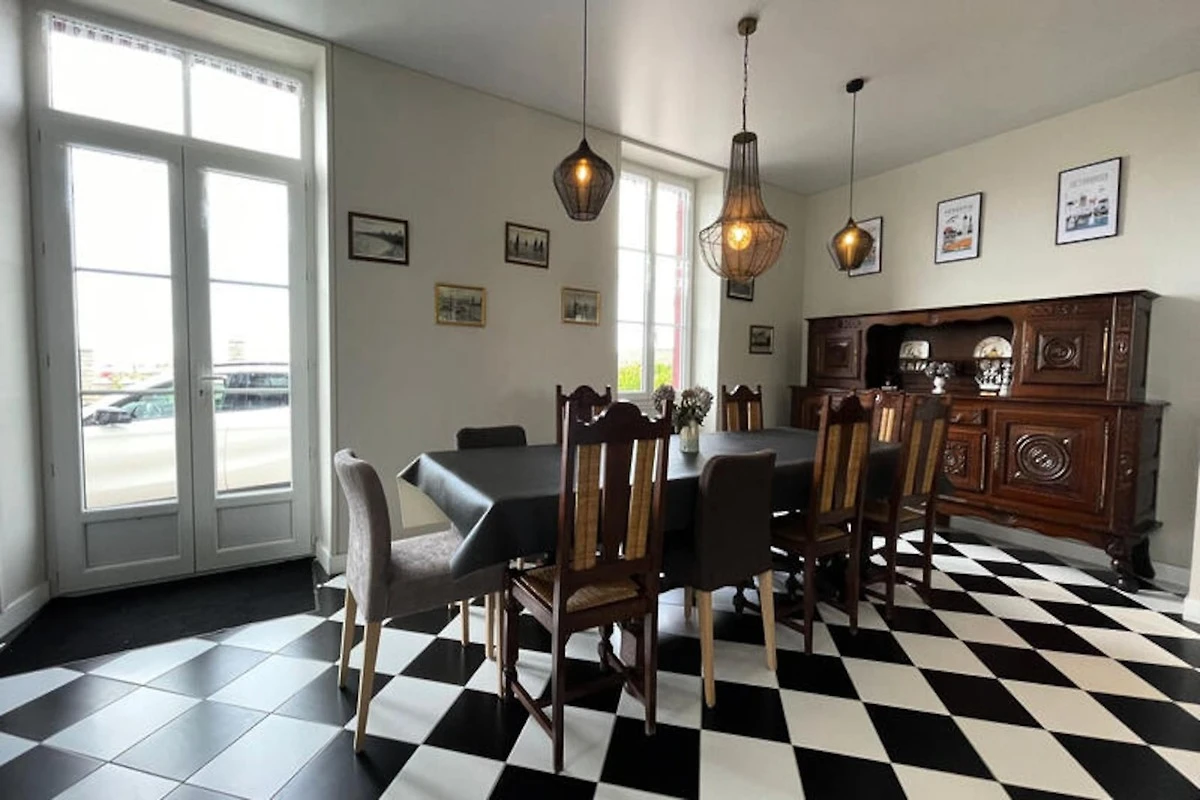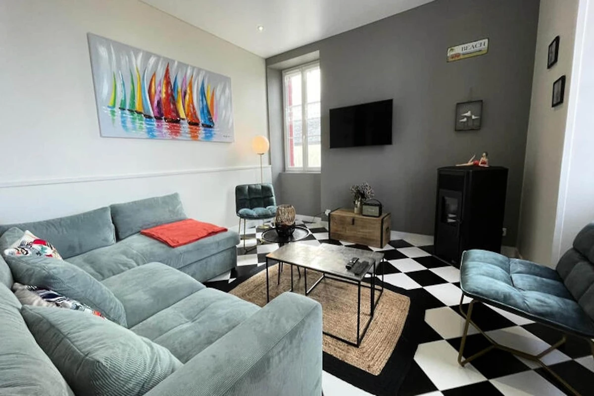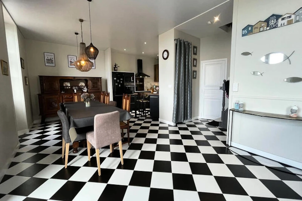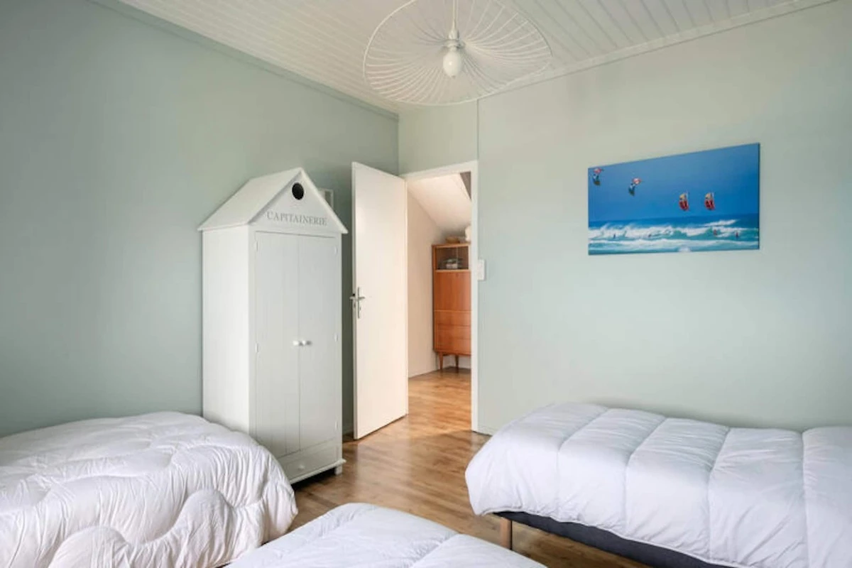 Stellen Sie sich vor, Sie wachen mit dem sanften Rauschen der Wellen auf und betreten Ihre Terrasse mit einem atemberaubenden Meerblick. Dieses charmante Haus in Assérac ist eine Oase der Ruhe und der Schönheit der Küste. Nur 200 Meter vom unberührten Strand Pen Bé in der Baie des Dames entfernt, bietet es den perfekten Rahmen für einen erholsamen Urlaub am Meer. Ob Sie Ihren Morgenkaffee mit der Meeresbrise genießen oder mit Ihren Lieben unter freiem Himmel grillen – dieses Haus lädt Sie ein, unvergessliche Erinnerungen zu schaffen. Das 130 m² große Haus bietet Platz für bis zu 9 Gäste. Mit 4 stilvoll eingerichteten Schlafzimmern und 4 Badezimmern, darunter ein Außenbad, ideal zum Abduschen nach einem Tag am Strand, ist jedes Detail auf Komfort ausgelegt. Die voll ausgestattete Küche im amerikanischen Stil verfügt über moderne Geräte wie ein Induktionskochfeld, einen Geschirrspüler und eine Kaffeemaschine, die das Kochen zum Vergnügen machen. Die großzügigen Wohnbereiche, WLAN und Fernseher sorgen für einen gemütlichen Rückzugsort nach einem erlebnisreichen Tag. Draußen bieten Garten und Terrasse mit Gartenmöbeln und Grill einen ruhigen Ort zum Entspannen.
