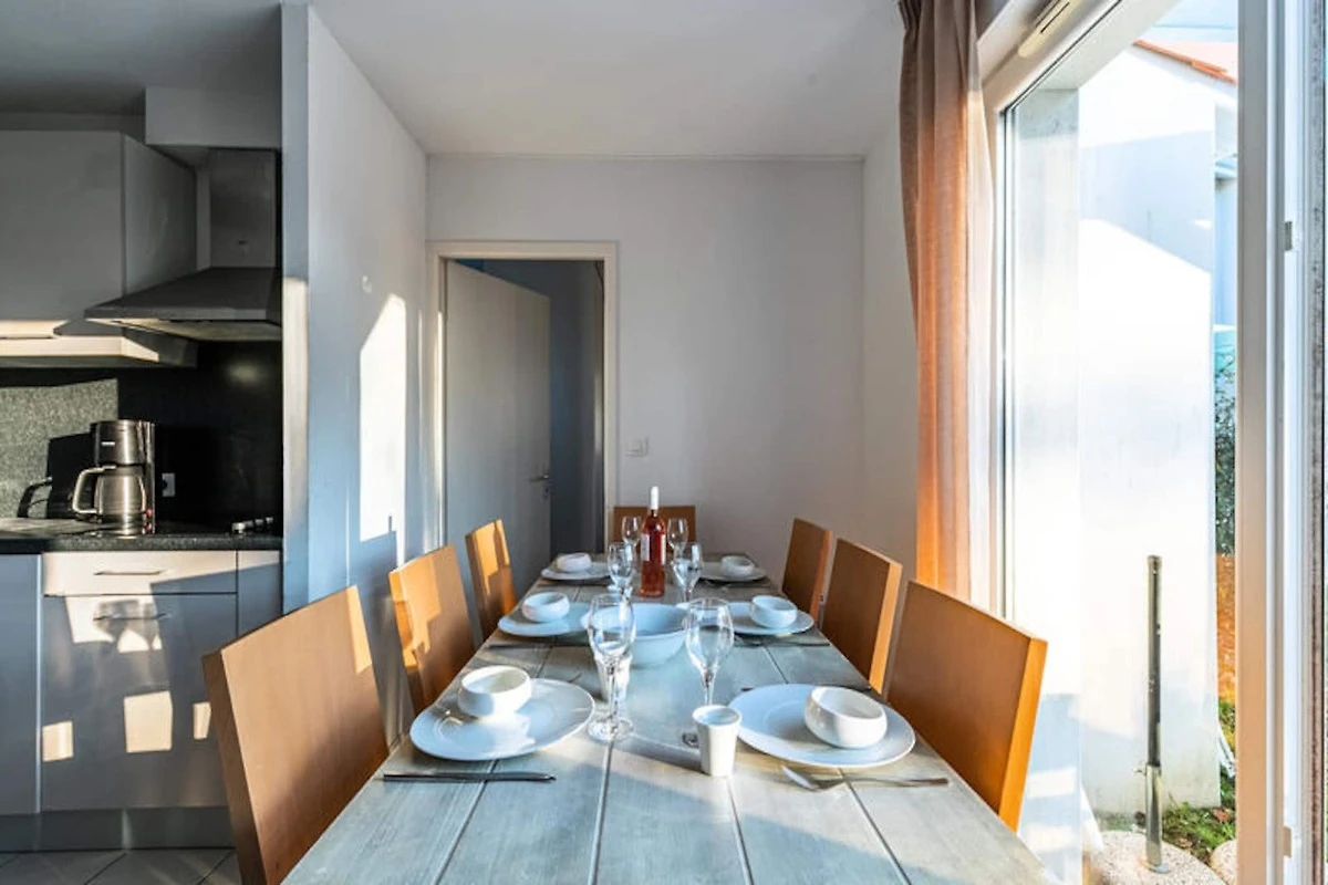 Inmitten des beschaulichen Charmes von Talmont-Saint-Hilaire bietet dieses entzückende Ferienhaus die perfekte Mischung aus Ruhe und Küstenflair. Stellen Sie sich vor, Sie erwachen zum sanften Rauschen der Blätter und der Verheißung einer Meeresbrise, während der malerische Strand von Veillon nur eine kurze Autofahrt entfernt ist. Ob Sie einen ruhigen Rückzugsort oder ein aktives Abenteuer am Meer suchen – dieses Anwesen ist Ihr Tor zur Schönheit der Vendée-Küste. Die ruhigen Straßen und Waldwege in der Nähe laden zum Erkunden in Ihrem eigenen Tempo ein, während die Radwege entlang der Dünen zu bekannten Orten wie Les Sables d’Olonne und La Tranche-sur-Mer führen.\n\nDas Haus mit drei Schlafzimmern bietet Platz für bis zu sechs Gäste und ist ideal für Familien oder Freundesgruppen. Das helle und geräumige Wohnzimmer mit großem Esstisch bietet Blick auf einen üppigen Garten, in dem Sie Mahlzeiten genießen können, die Sie in der voll ausgestatteten offenen Küche zubereiten. Induktionskochfeld, Kühlschrank, Mikrowelle mit Grillfunktion und weitere moderne Geräte sorgen für einen komfortablen Aufenthalt, während die gemütliche Atmosphäre zum Entspannen nach einem erlebnisreichen Tag einlädt. Bitte beachten Sie, dass kein WLAN verfügbar ist, damit Sie die Natur in vollen Zügen genießen können.\n\nIn unmittelbarer Nähe befindet sich das charmante Städtchen Les Sables d’Olonne, bekannt für seinen lebhaften Yachthafen, die Sandstrände und die exzellenten Fischrestaurants. Für Familien bieten der O’Gliss Park und der Beau Land Park aufregende Wasserrutschen und Fahrgeschäfte, während Golfliebhaber eine Runde auf dem Golfplatz Golf des Sables d’Olonne spielen können. Die nahegelegenen Rad- und Wanderwege bieten unzählige Möglichkeiten, die atemberaubende Landschaft der Region zu entdecken – von Küstendünen bis hin zu malerischen Dörfern.\n\nMit unserem Concierge-Service während Ihres gesamten Aufenthalts wird sich um jedes Detail gekümmert, sodass Sie einen reibungslosen und unvergesslichen Urlaub erleben. Ob Sie sich nun von der Anziehungskraft des Ozeans oder dem Charme von Talmont-Saint-Hilaire angezogen fühlen, dieses Anwesen verspricht eine unvergessliche Auszeit im Herzen der Vendée.