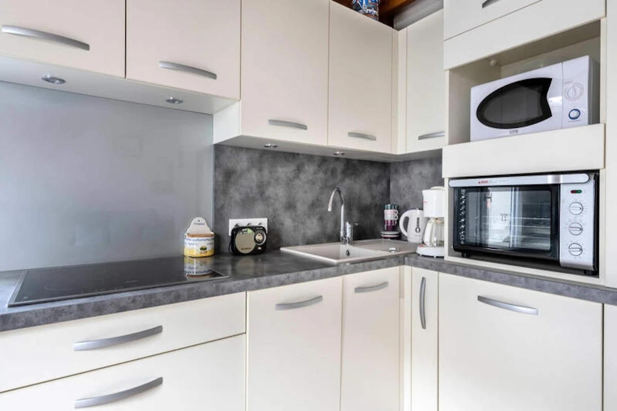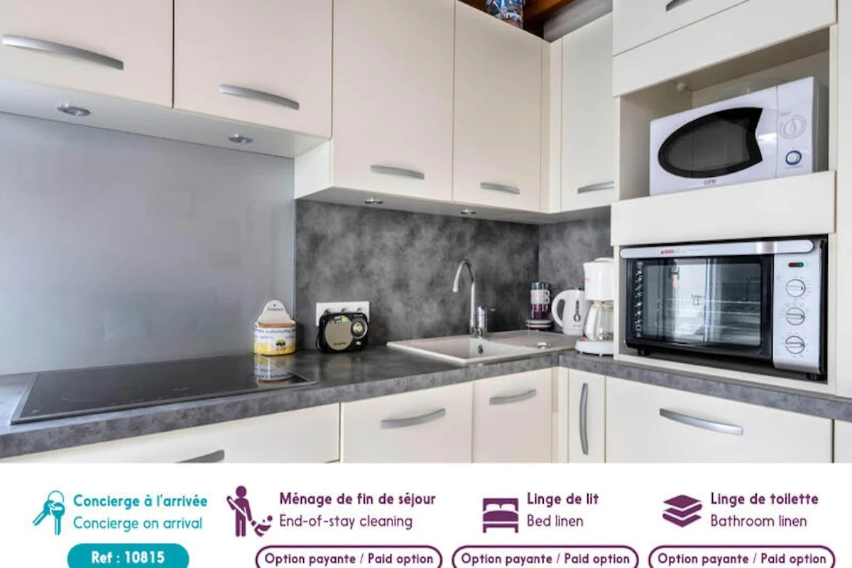 Eine sanfte Brise trägt den Duft des Meeres herüber, wenn Sie dieses bezaubernde Ferienhaus betreten, nur 550 Meter vom goldenen Sandstrand von Pornichet entfernt. Perfekt gelegen für einen erholsamen Familienurlaub, lädt dieses charmante Refugium zum Entspannen und Genießen der einfachen Freuden des Küstenlebens ein. Ob Sie sich auf der geräumigen 30 m² großen Terrasse in der Sonne aalen oder in der voll ausgestatteten Küche im amerikanischen Stil ein köstliches Essen zubereiten – jeder Moment hier ist ein Fest der Entspannung und des Miteinanders. \n\nIm Inneren bietet das gemütliche 34 m² große Haus bequem Platz für bis zu vier Gäste. Der durchdacht gestaltete Raum umfasst ein einladendes Schlafzimmer, moderne Annehmlichkeiten wie Sat-TV, WLAN, Radio und DVD-Player sowie praktische Details wie einen Haartrockner und einen Parkplatz. Die Küche ist ein Paradies für Kochbegeisterte und mit einem Cerankochfeld, Kühlschrank, Mikrowelle, Backofen, Geschirrspüler, Toaster und Wasserkocher ausgestattet, sodass jede Mahlzeit ein Genuss ist. In einer familienfreundlichen Gegend gelegen, ist dieses Haus nur wenige Gehminuten vom lebhaften Markt von Pornichet entfernt, wo Sie frische Produkte aus der Region und regionale Spezialitäten entdecken können. Erkunden Sie den nahegelegenen Strand Bonne Source, genießen Sie ein Abendessen am Meer im Restaurant Nina à la Plage oder verbringen Sie einen erlebnisreichen Tag im Wasserpark Aquabaule. Golfliebhaber werden die Nähe zum Golfplatz Golf La Baule zu schätzen wissen, während Kulturinteressierte den Charme von La Baule-les-Pins und die berühmten Niniches-Bonbons genießen können. Mit einem Concierge-Service, der Ihnen während Ihres gesamten Aufenthalts zur Verfügung steht, wird sich um jedes Detail gekümmert, sodass Sie sich ganz auf unvergessliche Momente konzentrieren können. Ob Sie an der Strandpromenade entlangspazieren oder einfach die Ruhe auf Ihrer Terrasse genießen – dieses Haus in Pornichet ist Ihr Tor zum perfekten Küstenurlaub.