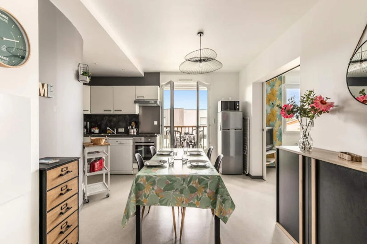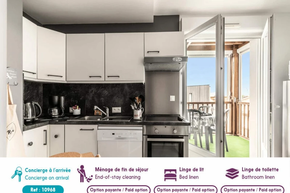 An der sonnenverwöhnten Küste der Vendée, wo die Atlantikbrise den Duft des Meeres herüberweht, lädt dieses frisch renovierte Apartment zu einem erholsamen Aufenthalt ein. Die 48 m² große Oase vereint modernen Komfort mit maritimem Charme und ist ideal für Familien oder Freunde, die eine Auszeit suchen. Erwachen Sie im ruhigen Schlafzimmer mit Queensize-Bett oder entspannen Sie im stilvollen Wohnzimmer mit Doppelschlafsofa und minimalistischer Einrichtung. Die offene Küche, komplett ausgestattet mit Cerankochfeld und Geschirrspüler, macht die Zubereitung von Mahlzeiten zum Vergnügen, während der geräumige Balkon der perfekte Ort ist, um bei einer Tasse Kaffee die Morgensonne zu genießen. Ein Außenstellplatz sorgt für Komfort, und dank der erstklassigen Lage des Apartments können Sie die Umgebung bequem zu Fuß, mit dem Fahrrad oder über die nahegelegene Bushaltestelle erkunden. Nur 1 km entfernt lockt der weitläufige Sandstrand Grande Plage zu einem entspannten Tag, und Restaurants wie L’Entracte und Jules & John versprechen kulinarische Genüsse in fußläufiger Entfernung. Golfliebhaber können den nahegelegenen Bluegreen-Golfplatz genießen, und die lebhaften Kais von Saint-Gilles-Croix-de-Vie erwachen mit Straßenkünstlern, Nachtmärkten und einladenden Terrassen zum Leben. Radwege schlängeln sich durch Dünen und Pinienwälder und bieten atemberaubende Ausblicke und erholsame Touren. Für einen Hauch Geschichte und Abenteuer ist der berühmte Freizeitpark Le Puy du Fou nur gut eine Autostunde entfernt. Saint-Gilles-Croix-de-Vie ist eine Stadt voller Überraschungen – von den Label-Rouge-Sardinen über den geschäftigen Yachthafen bis hin zu den farbenfrohen Märkten mit regionalen Produkten. Ob Sie an den Kais entlangspazieren oder das Küstenflair genießen, dieses einladende Reiseziel verspricht unvergessliche Momente. Dank des Concierge-Services während Ihres gesamten Aufenthalts wird sich um jedes Detail gekümmert, sodass Sie einen reibungslosen und angenehmen Urlaub genießen können. Lassen Sie sich von der Küste der Vendée für Ihren nächsten Urlaub inspirieren.