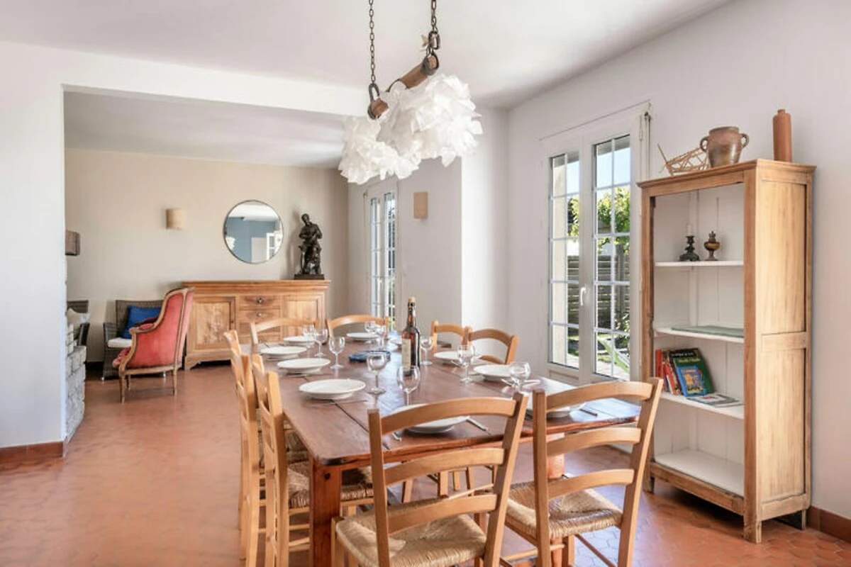 Genießen Sie die sanfte Meeresbrise und lassen Sie sich vom Rauschen der Wellen zu Ihrem perfekten Küstenurlaub verzaubern. Dieses geräumige und charmante Haus in Saint-Gildas-de-Rhuys bietet einen idyllischen Rückzugsort nur wenige Schritte vom Sandstrand Plage de Kercambre entfernt. Ob Sie mit Familie oder Freunden reisen, diese Oase am Meer verspricht Entspannung und unvergessliche Momente. Mit der natürlichen Schönheit des Golfs von Morbihan direkt vor der Tür beginnt Ihr Urlaub schon bei Ihrer Ankunft. Das 200 m² große Haus bietet bequem Platz für bis zu 10 Gäste in 5 komfortablen Schlafzimmern. Die hellen und luftigen Räume werden durch moderne Annehmlichkeiten wie WLAN, Fernseher und einen gemütlichen Kamin für kühlere Abende ergänzt. Die separate Küche ist komplett ausgestattet mit allem, was Sie für die Zubereitung köstlicher Mahlzeiten benötigen, vom Gasherd und Backofen bis hin zur Senseo-Kaffeemaschine und dem Toaster. Draußen laden der große, umzäunte Garten und die 20 m² große Terrasse zum Sonnenbaden, Essen im Freien oder Grillen für einen lauen Sommerabend unter dem Sternenhimmel ein. Drei private Parkplätze garantieren Komfort.